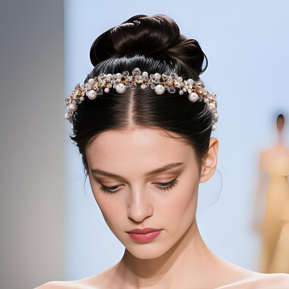 Bridal Hair Band, Zinc Alloy, with Crystal & Plastic Pearl, plated, fashion jewelry & with rhinestone, more colors for choice, Sold By PC