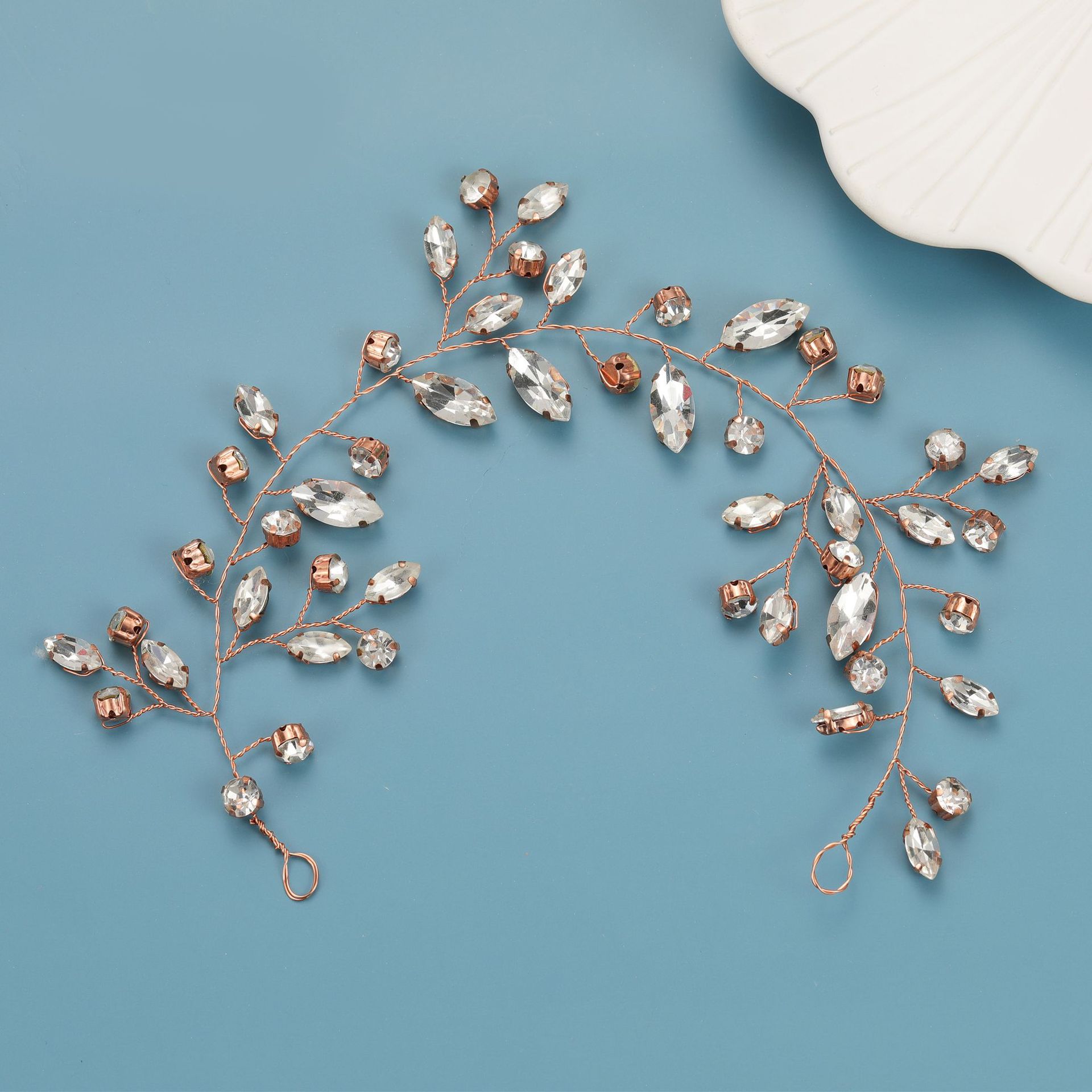 Bridal Hair Band, Zinc Alloy, Leaf, rose gold color plated, handmade & for bridal & with rhinestone, lead & cadmium free