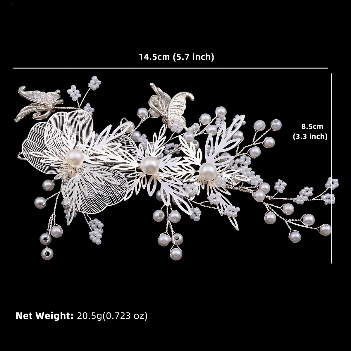 Bridal Hair Flowers, Brass, with Plastic Pearl, silver color plated, with rhinestone
