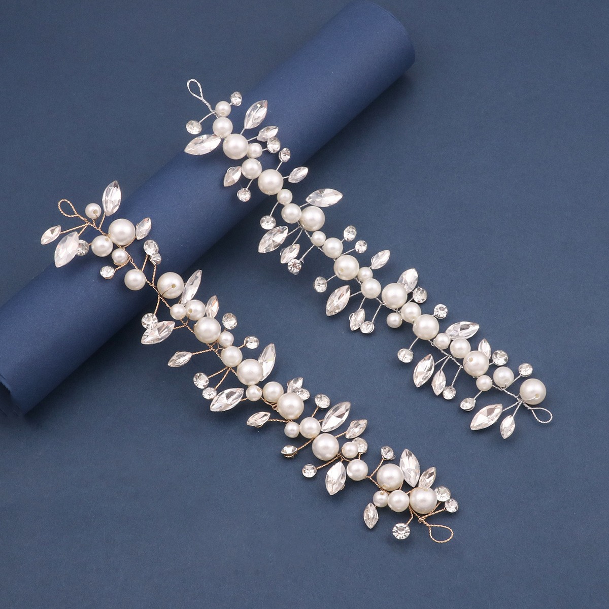 Bridal Hair Flowers, Brass, with Crystal & Plastic Pearl, plated, for woman