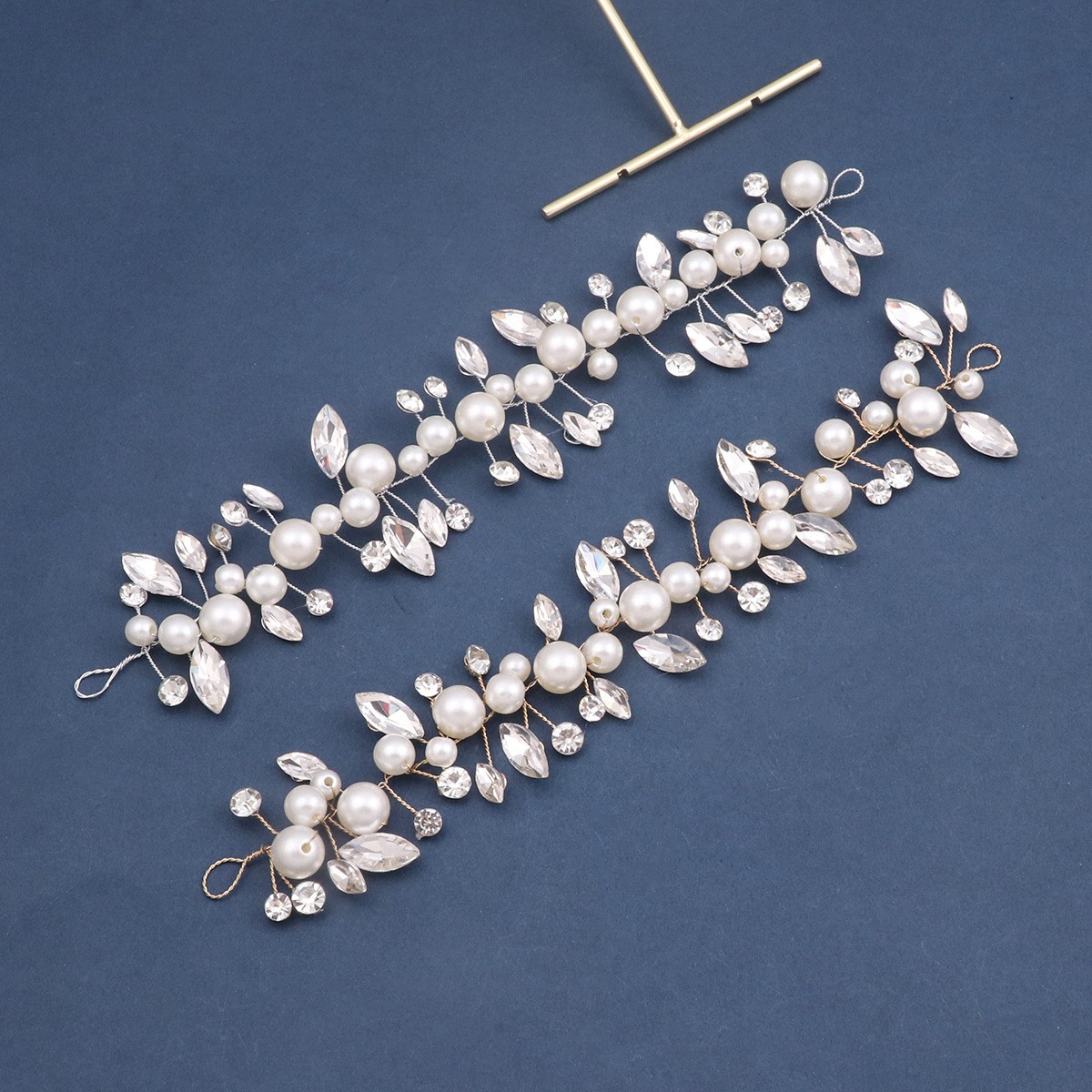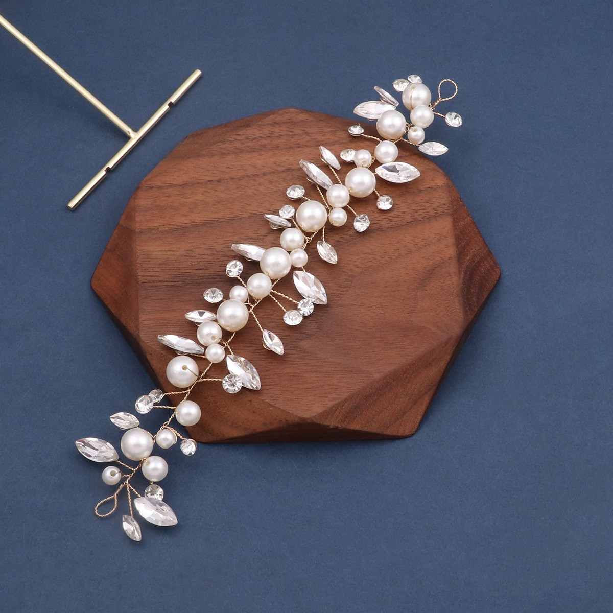 Bridal Hair Flowers, Plastic Pearl, with Seedbead & Crystal & Brass, plated, for woman