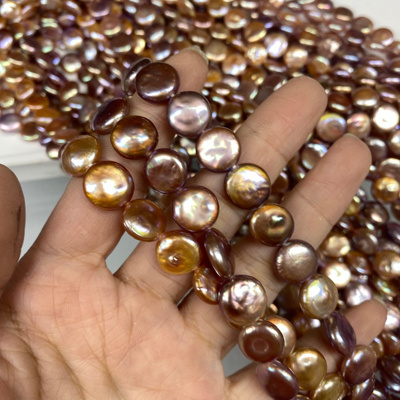 Button Cultured Freshwater Pearl Beads, Flat Round, natural & DIY, 12mm, Length:Approx 38-39 cm, Sold By Strand