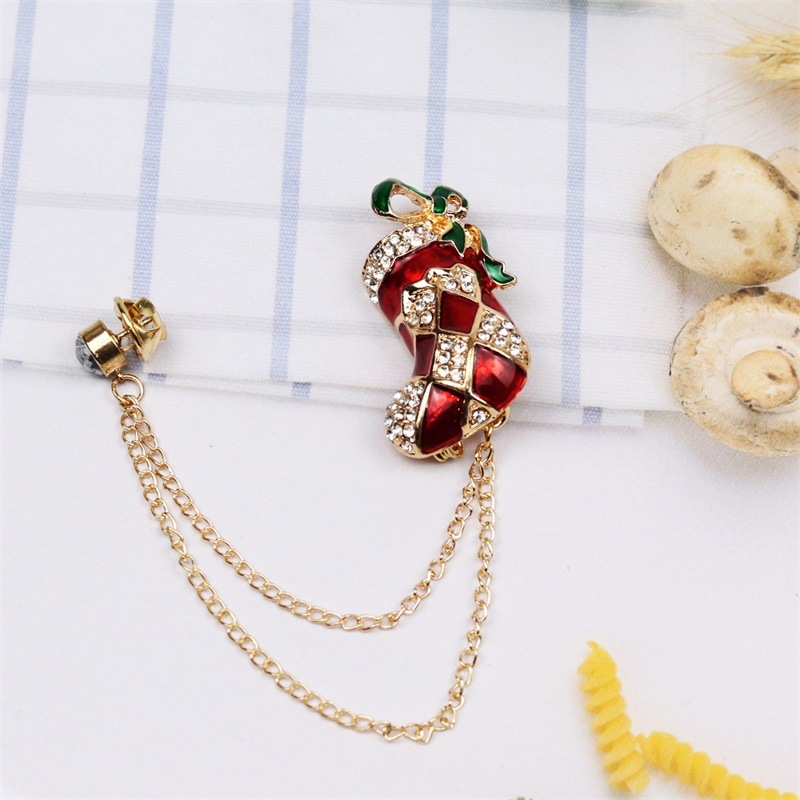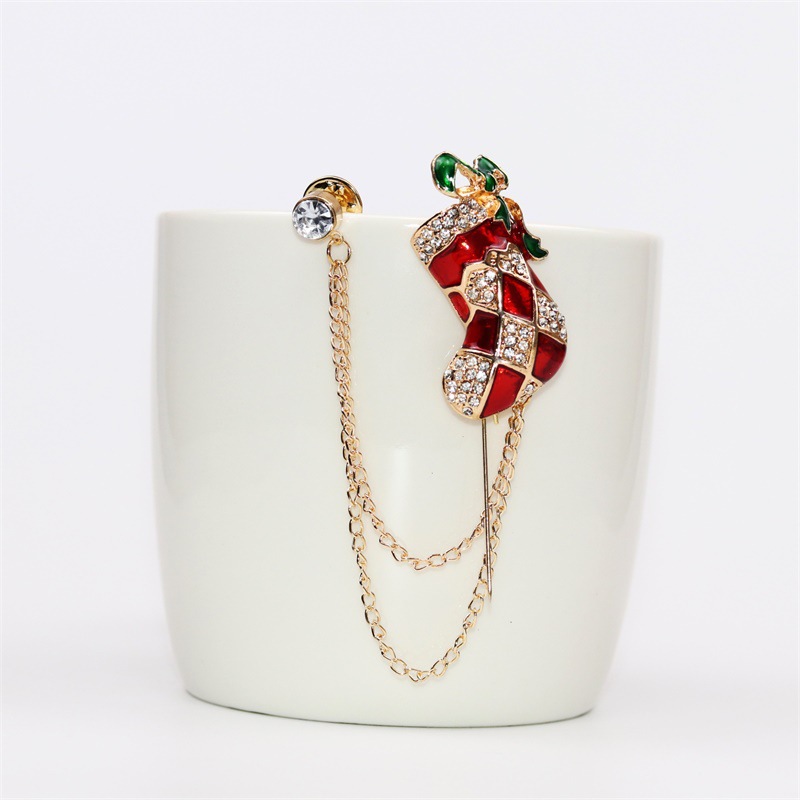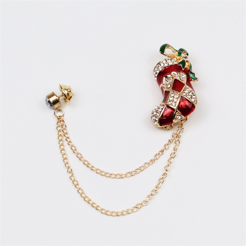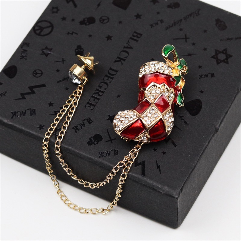 Christmas Jewelry Brooch , Zinc Alloy, with Crystal, Christmas Boot, gold color plated, Unisex & enamel & with rhinestone, lead & cadmium free