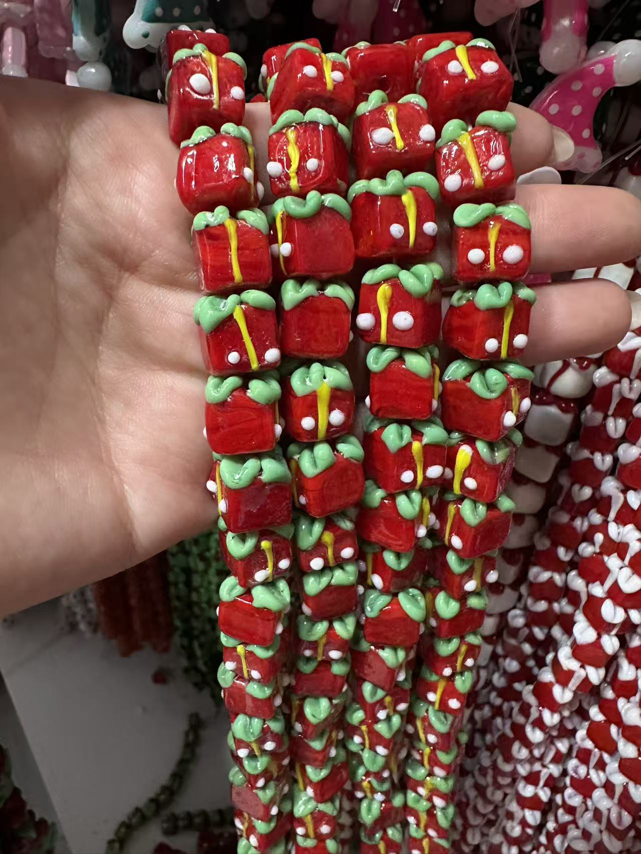 Christmas Lampwork Beads, gift shape, DIY & enamel, more colors for choice, 16x18mm, 20PCs/Bag, Sold By Bag