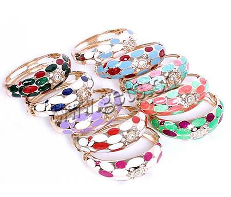Cloisonne Bracelet, Zinc Alloy, Donut, gold color plated, imitation cloisonne & with flower pattern & enamel & with rhinestone & hollow, mixed colors Approx 7-8 Inch