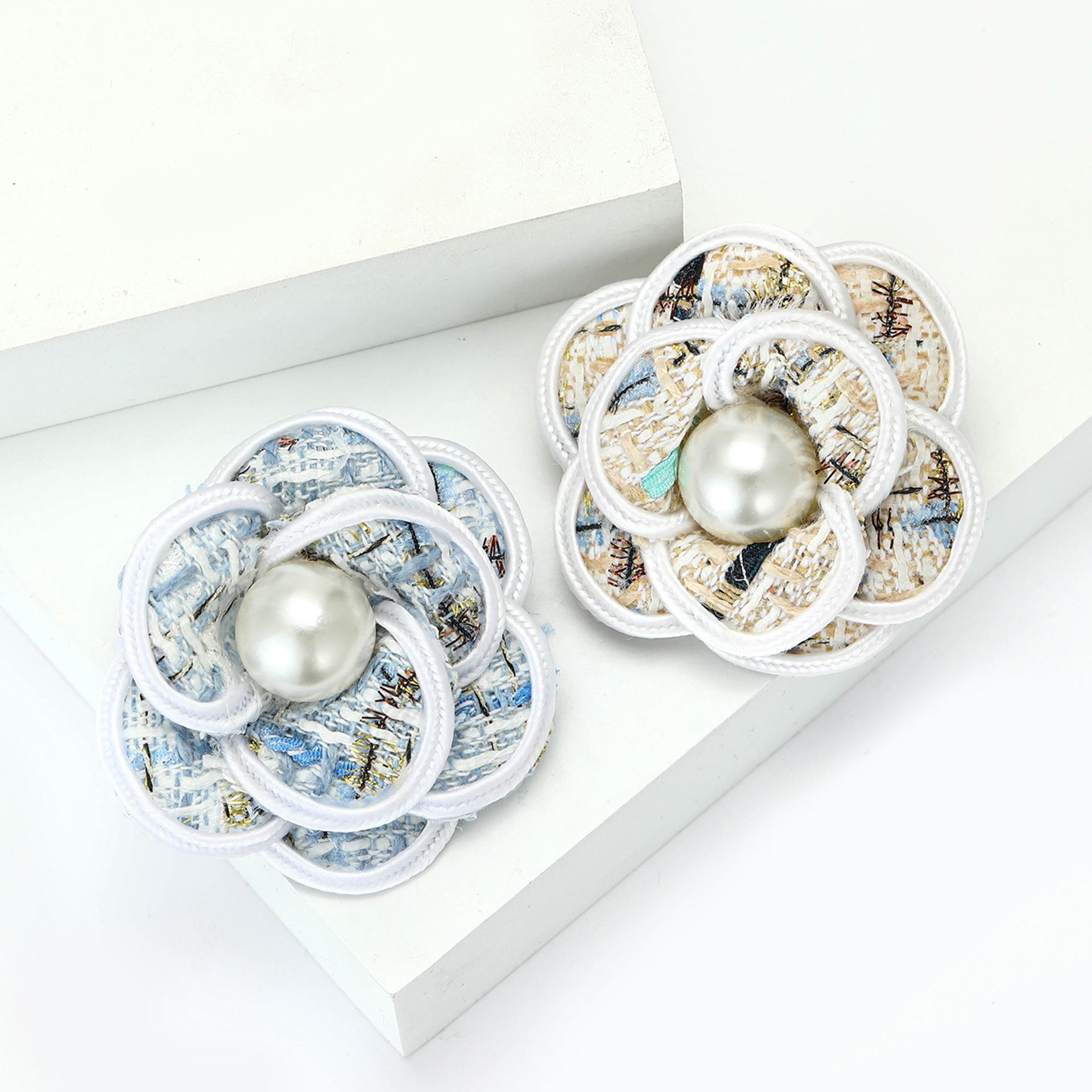 Cloth Brooch, Zinc Alloy, with Cloth & Plastic Pearl, Flower, plated, for woman, more colors for choice, Sold By PC