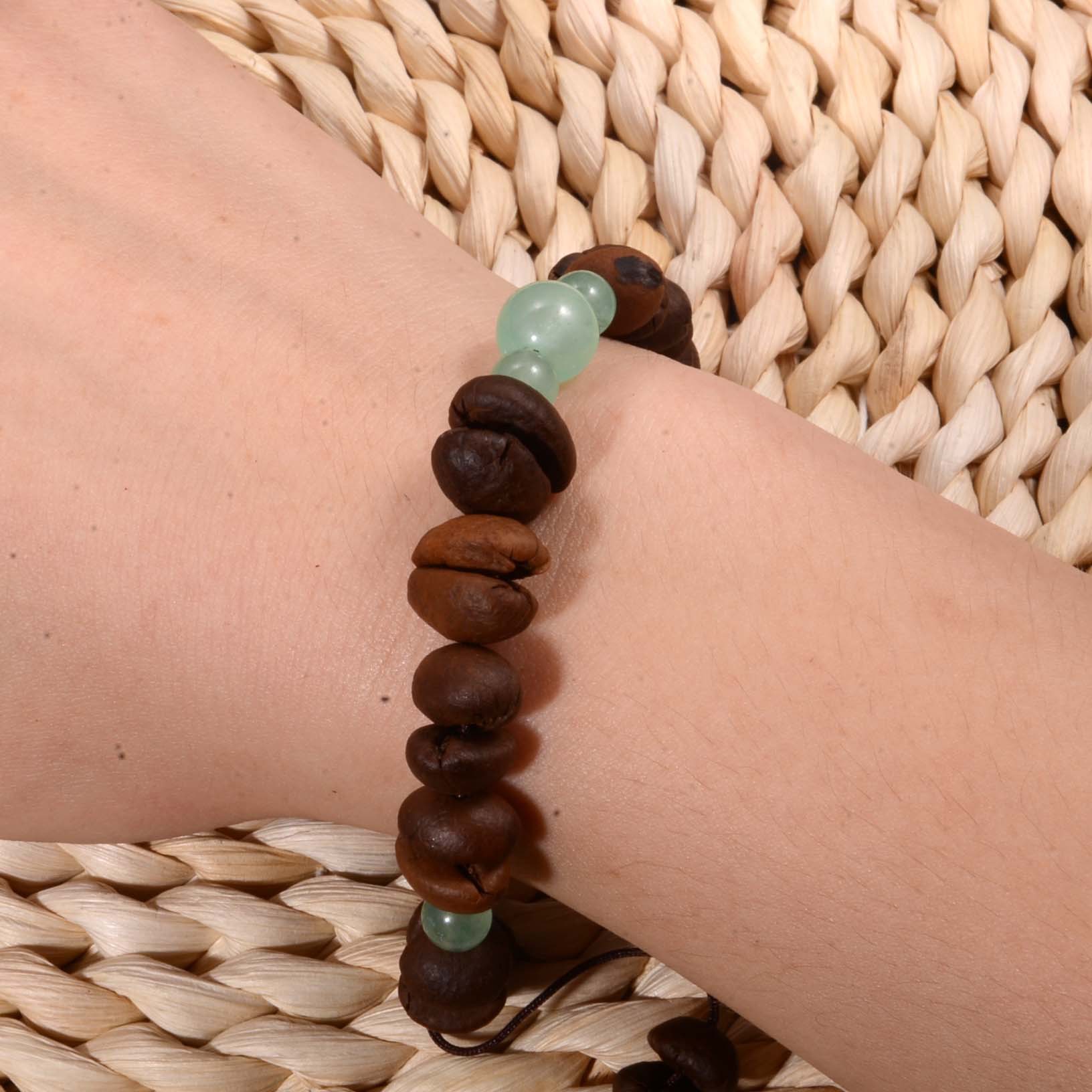 Coffee Bean Bracelet, with Glass Beads & Wax Cord, handmade, fashion jewelry & Unisex, Length:Approx 7-11 Inch, Sold By PC