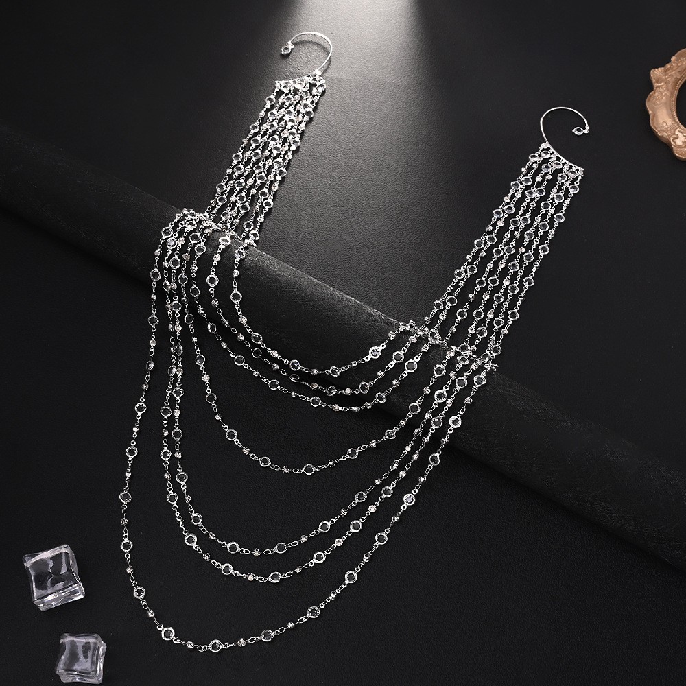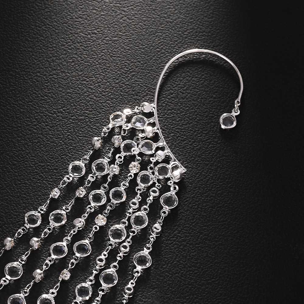 Copper Alloy Earring Wrap, plated, fashion jewelry & for woman & with rhinestone, silver color, Sold By PC