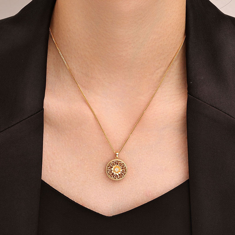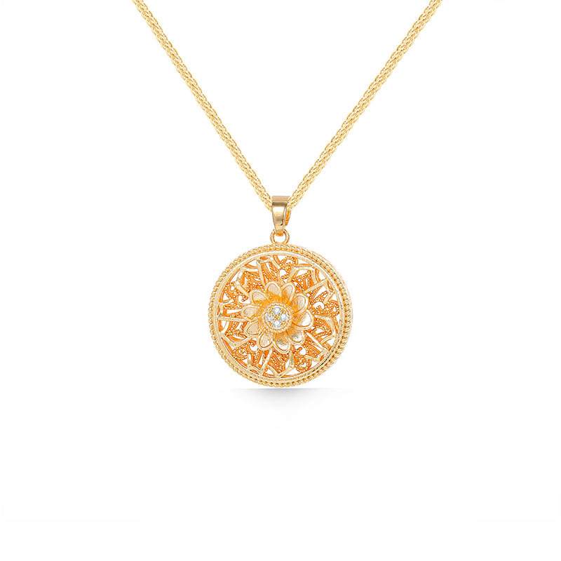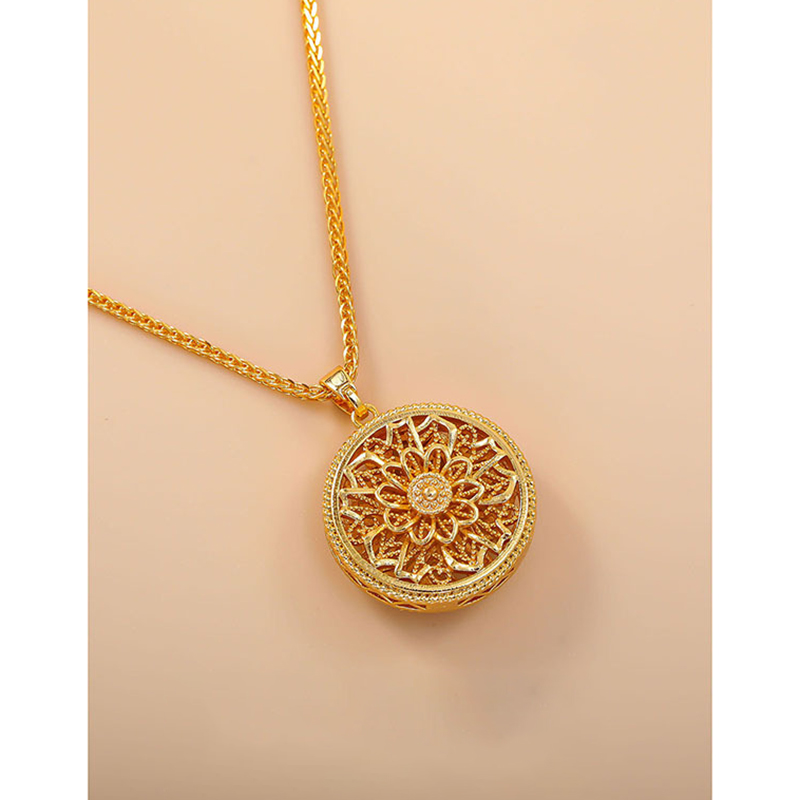 Copper Alloy Necklace, Round, gold color plated, for woman & with rhinestone & hollow, Length:Approx 17 Inch, Sold By PC