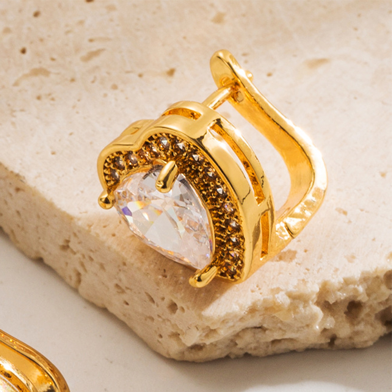 Cubic Zircon Brass Earring, Teardrop, gold color plated, with cubic zirconia