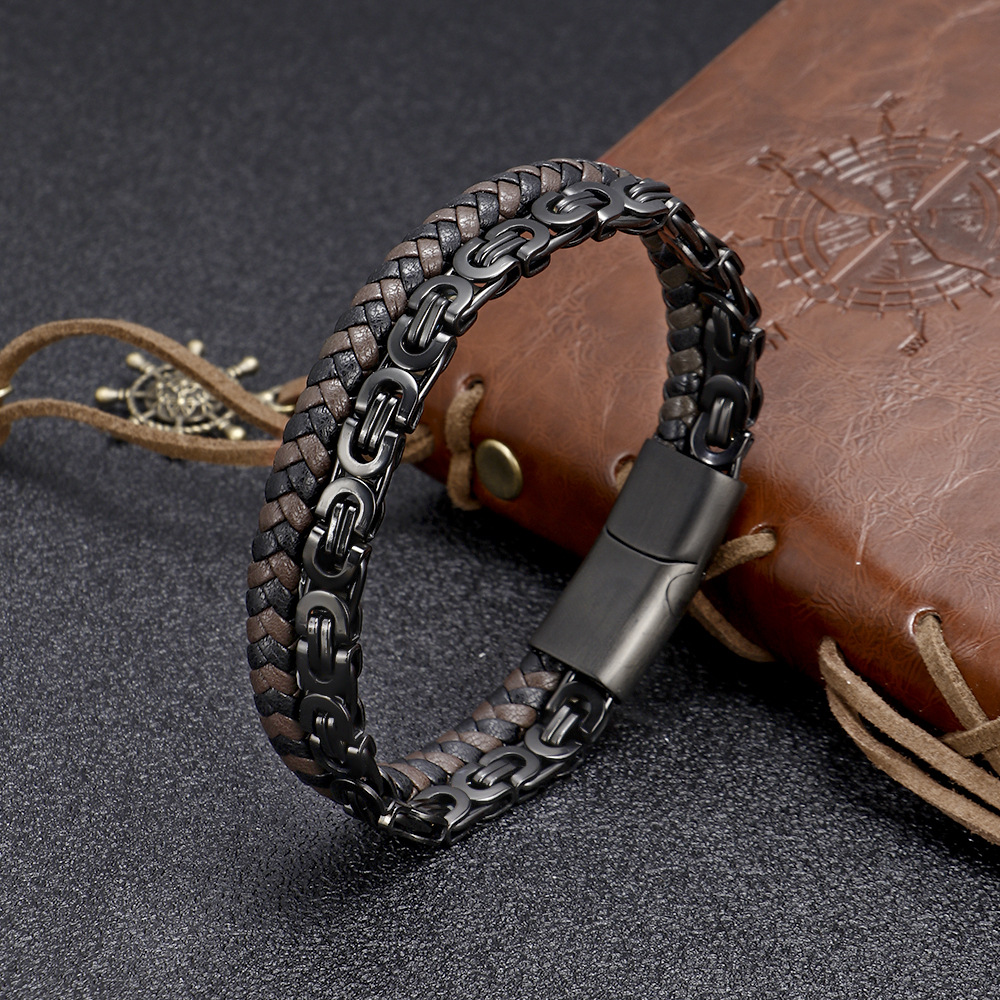 Cowhide Bracelets, 304 Stainless Steel, with Cowhide, plated, Double Layer & fashion jewelry & for man, more colors for choice, Sold By PC