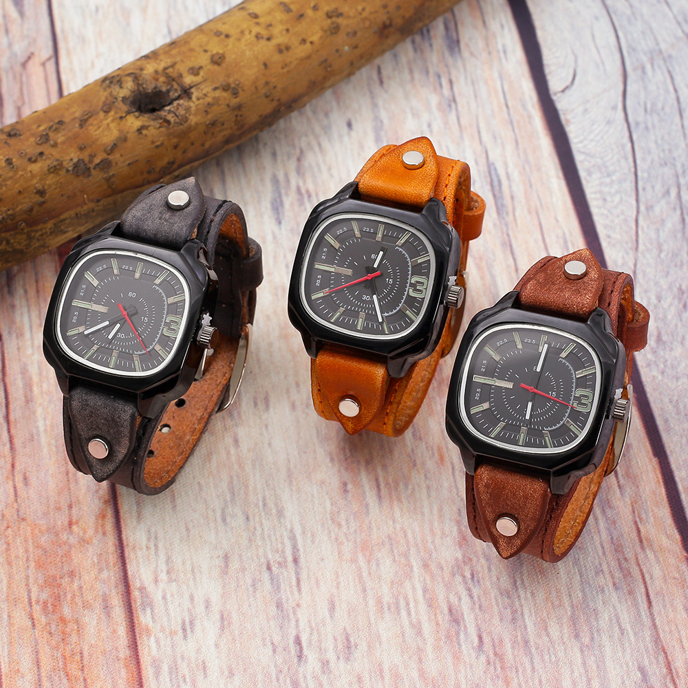 Cowhide Watch Bracelet, with Glass & Zinc Alloy, Square, vintage & Chinese movement & Unisex, more colors for choice, Length:Approx 26 cm, Sold By PC