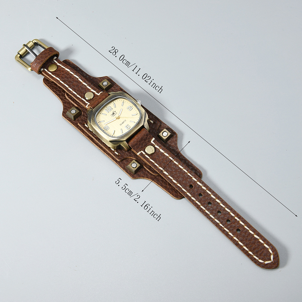 Cowhide Watch Bracelet, with Wax Cord & Glass & Zinc Alloy, vintage & Chinese movement & for man, more colors for choice, Length:Approx 28 cm, Sold By PC