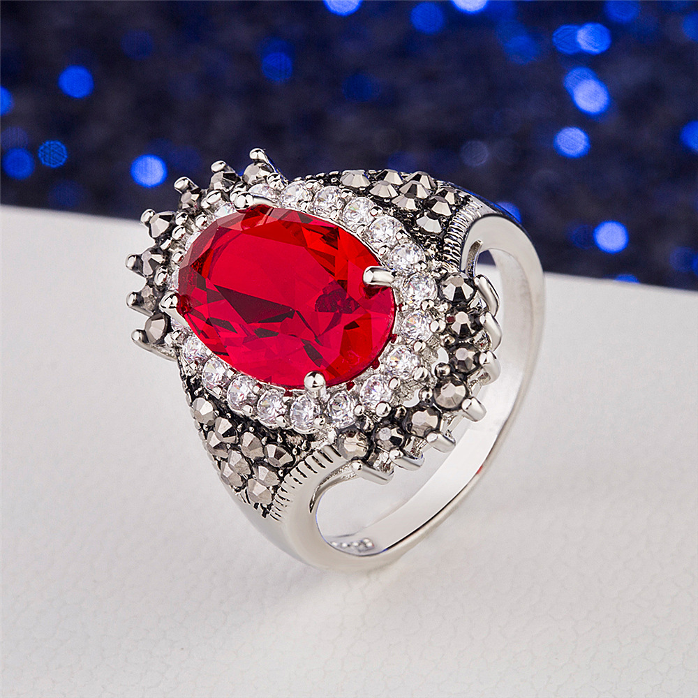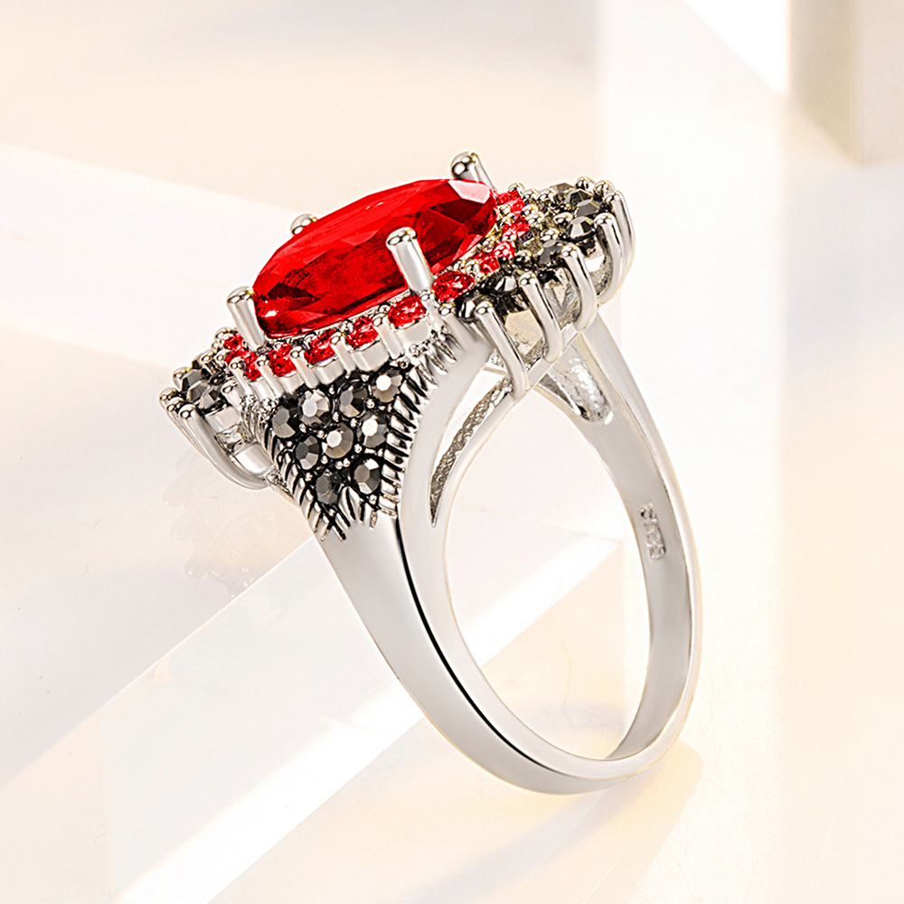 Red Diamond Red Stone Ring [Thai Silver Plating Bl
