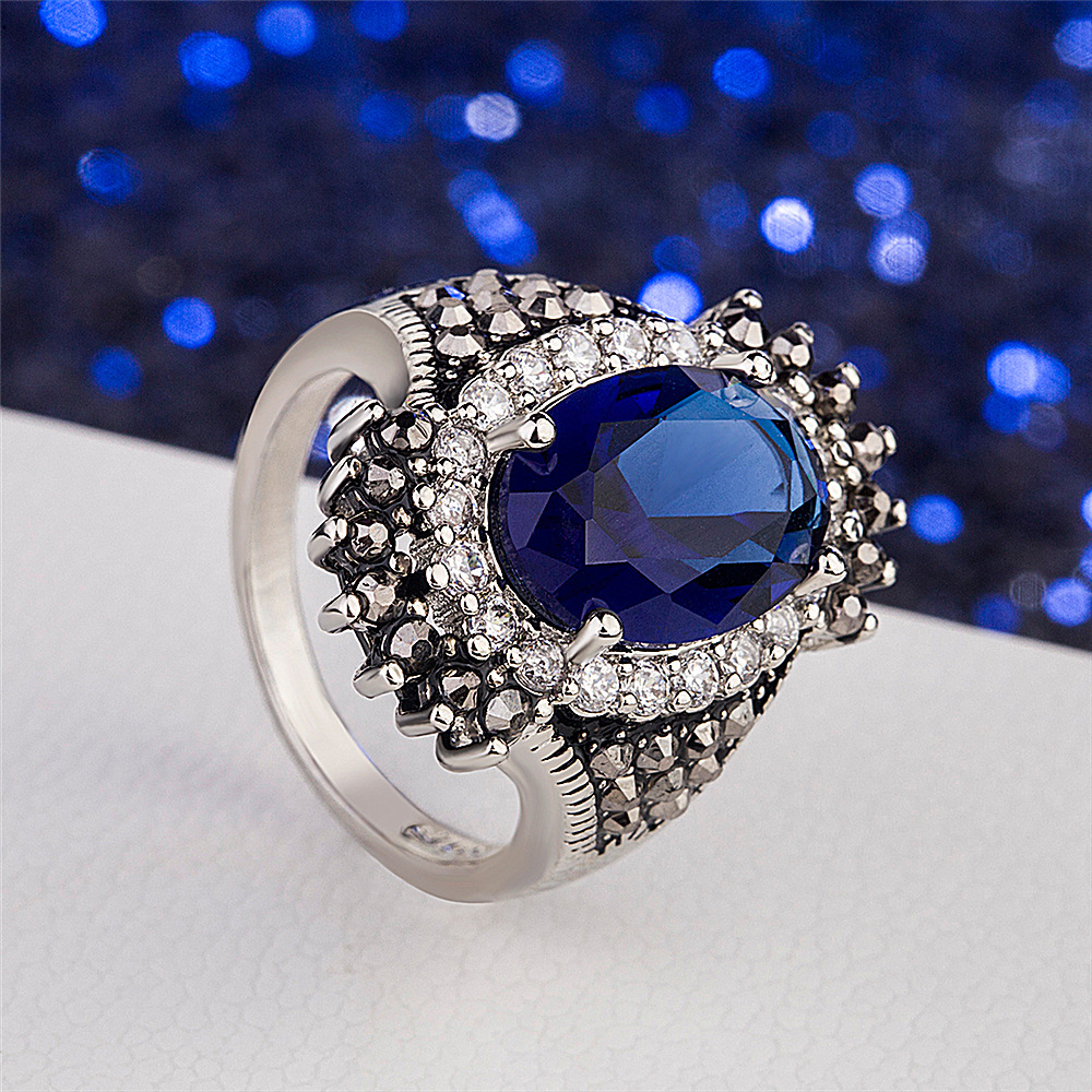 Blue Diamond Blue Stone Drill Ring [Thai Silver Pl