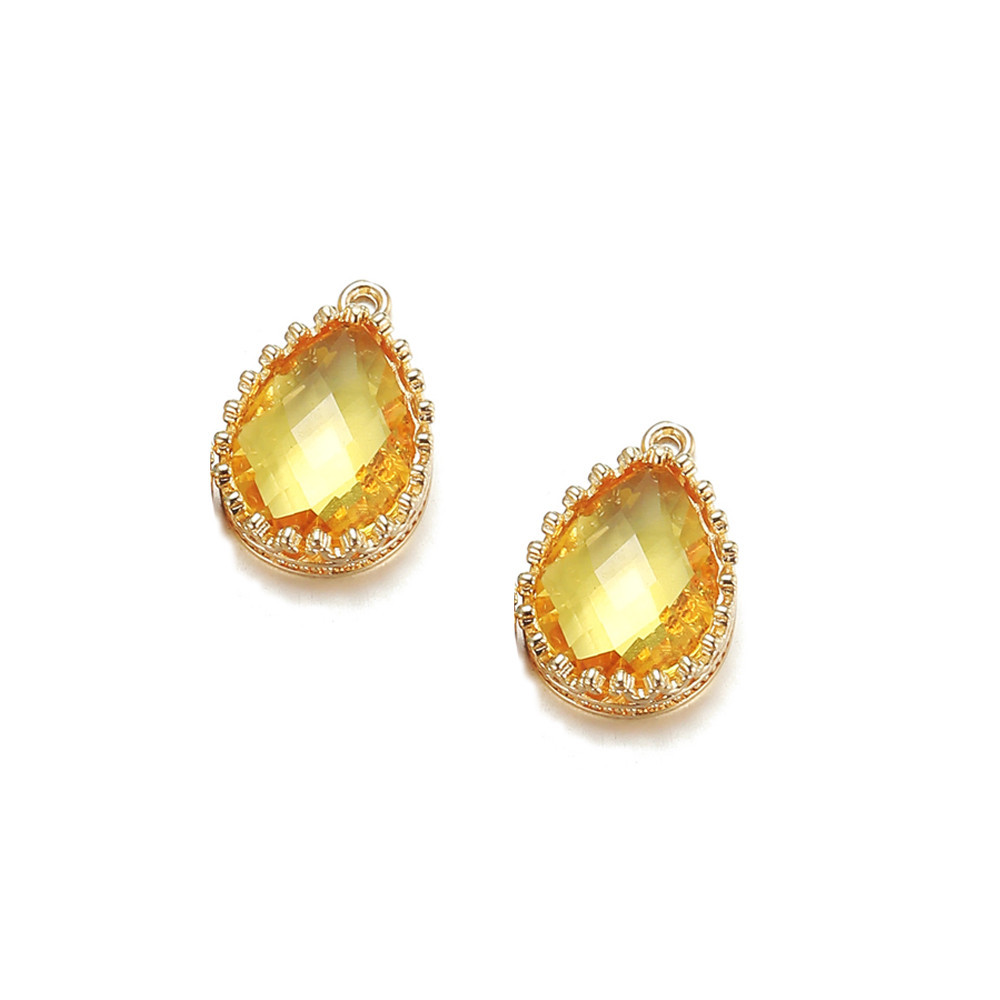 Crystal Brass Pendants, with Glass, gold color plated, faceted Approx 1.5mm
