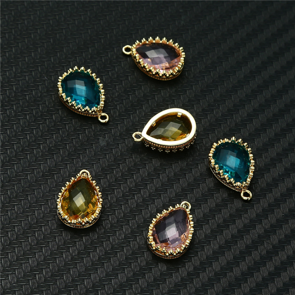 Crystal Brass Pendants, with Crystal, Teardrop, plated, DIY, more colors for choice, 50PCs/Bag, Sold By Bag