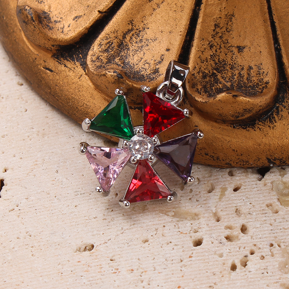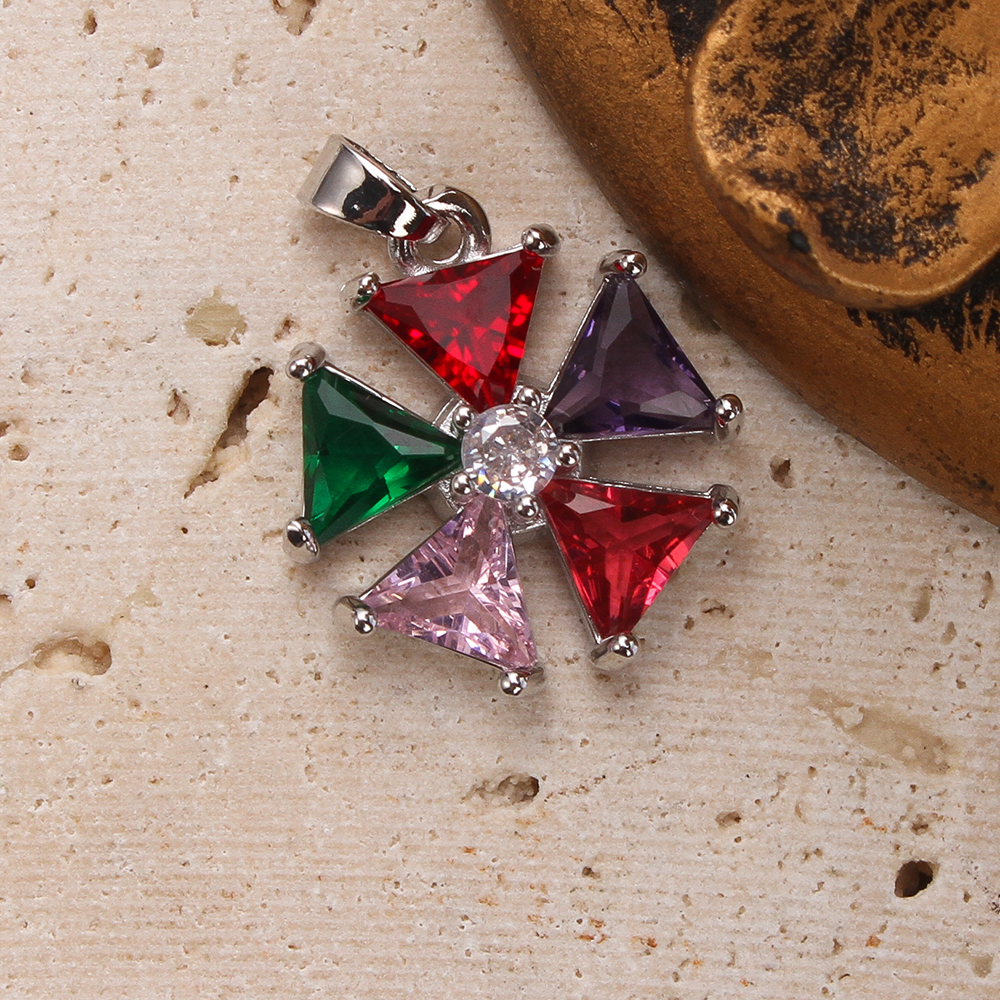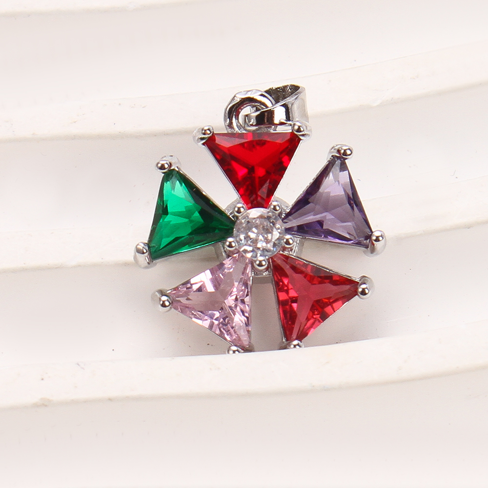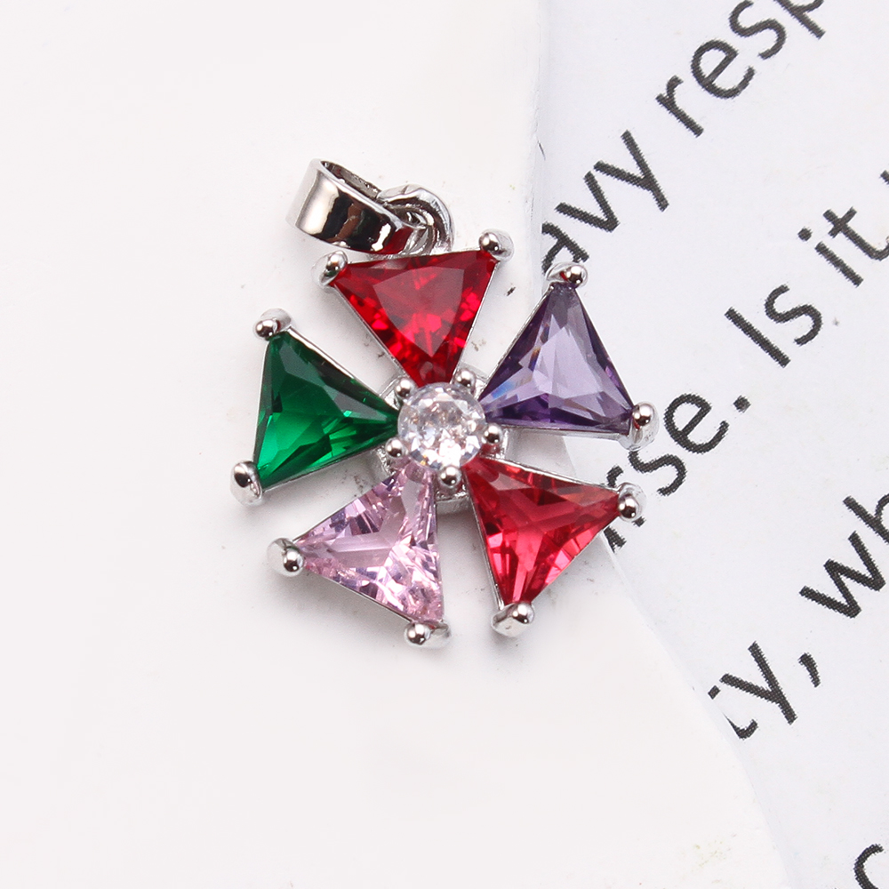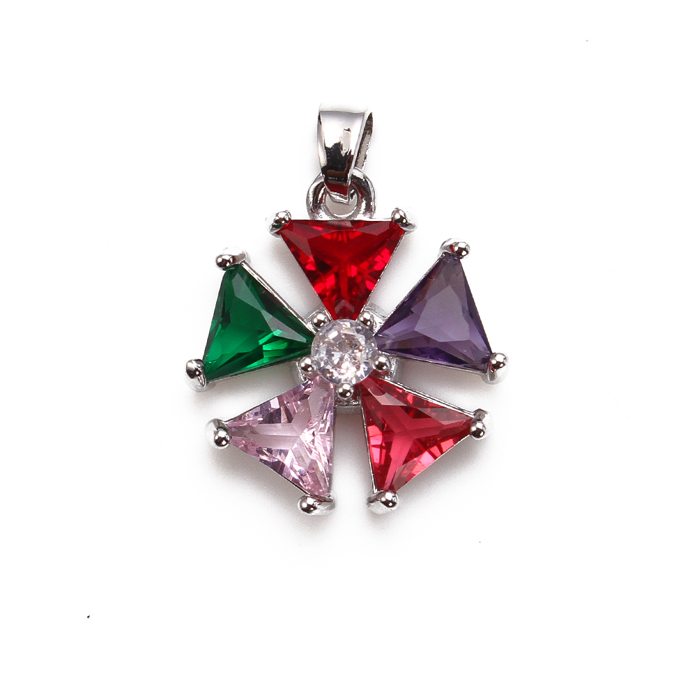 Crystal Brass Pendants, with Crystal, Flower, plated, DIY & micro pave cubic zirconia, silver color, 16.66x5.79x21.82mm, 20PCs/Bag, Sold By Bag