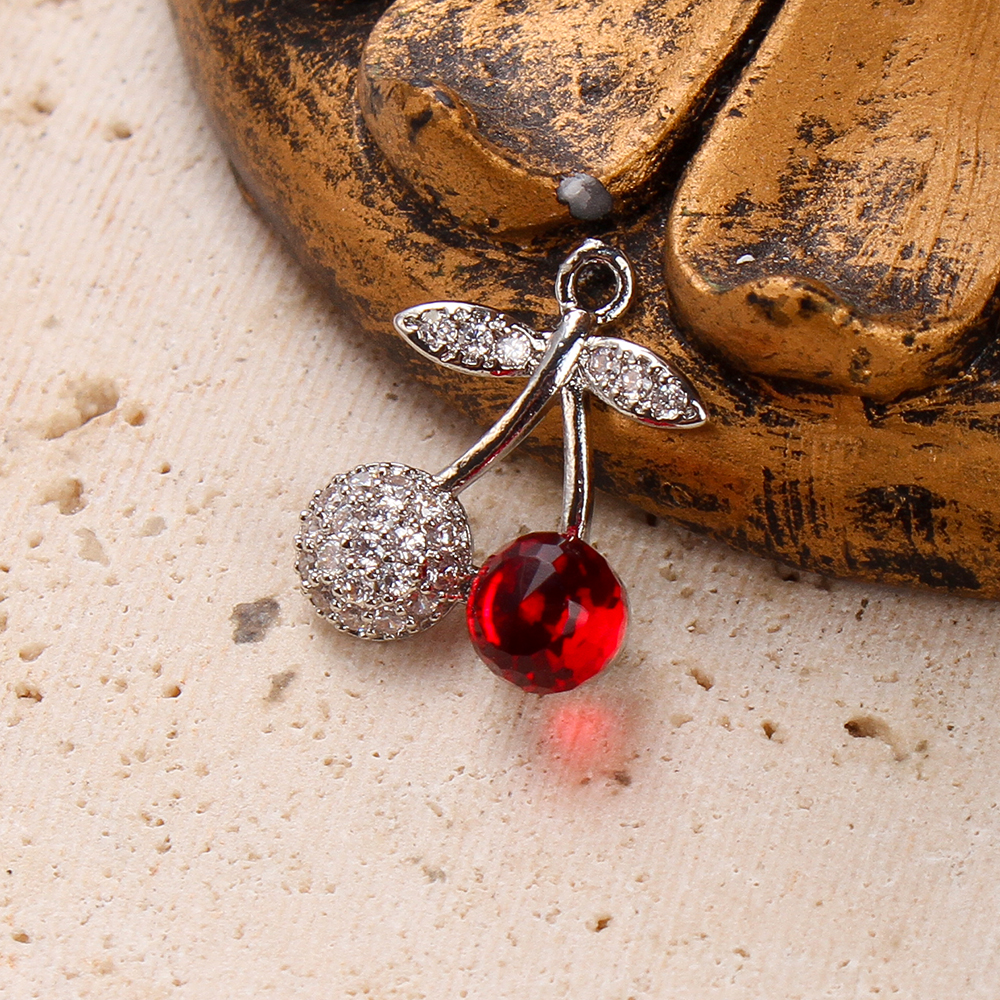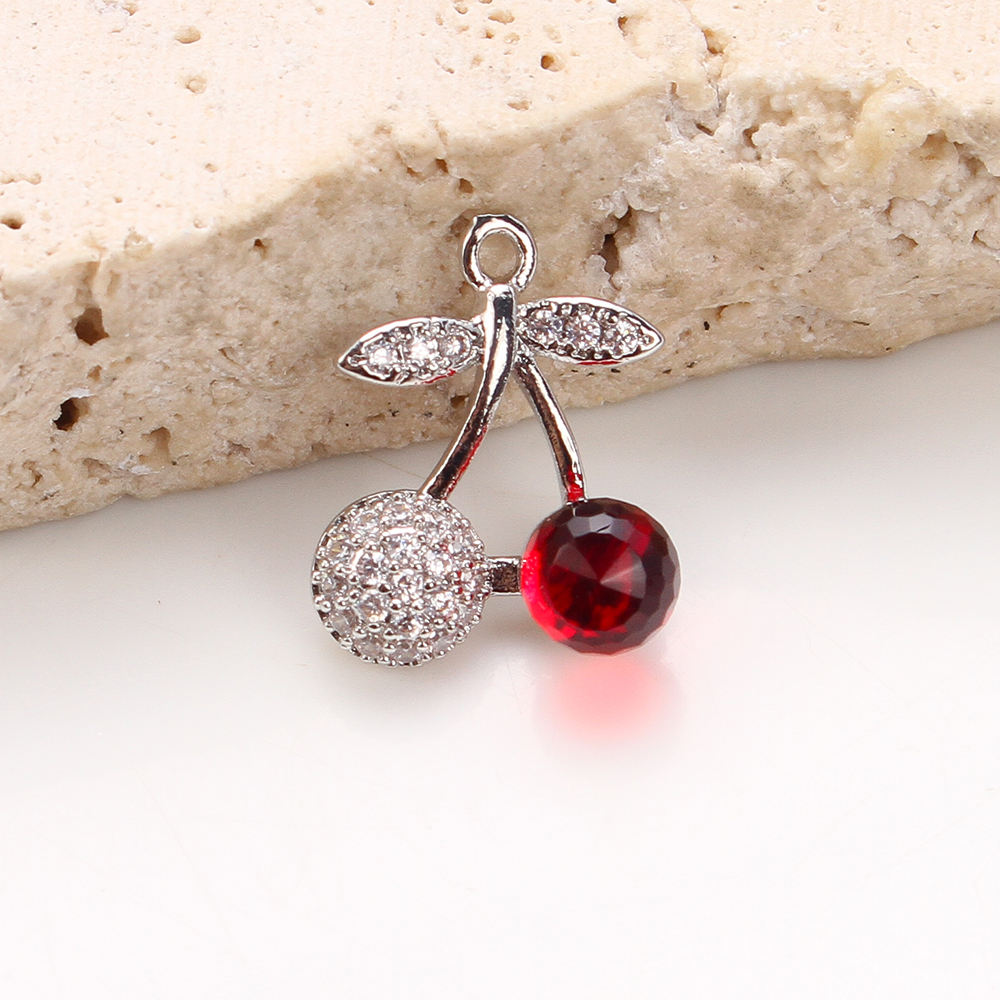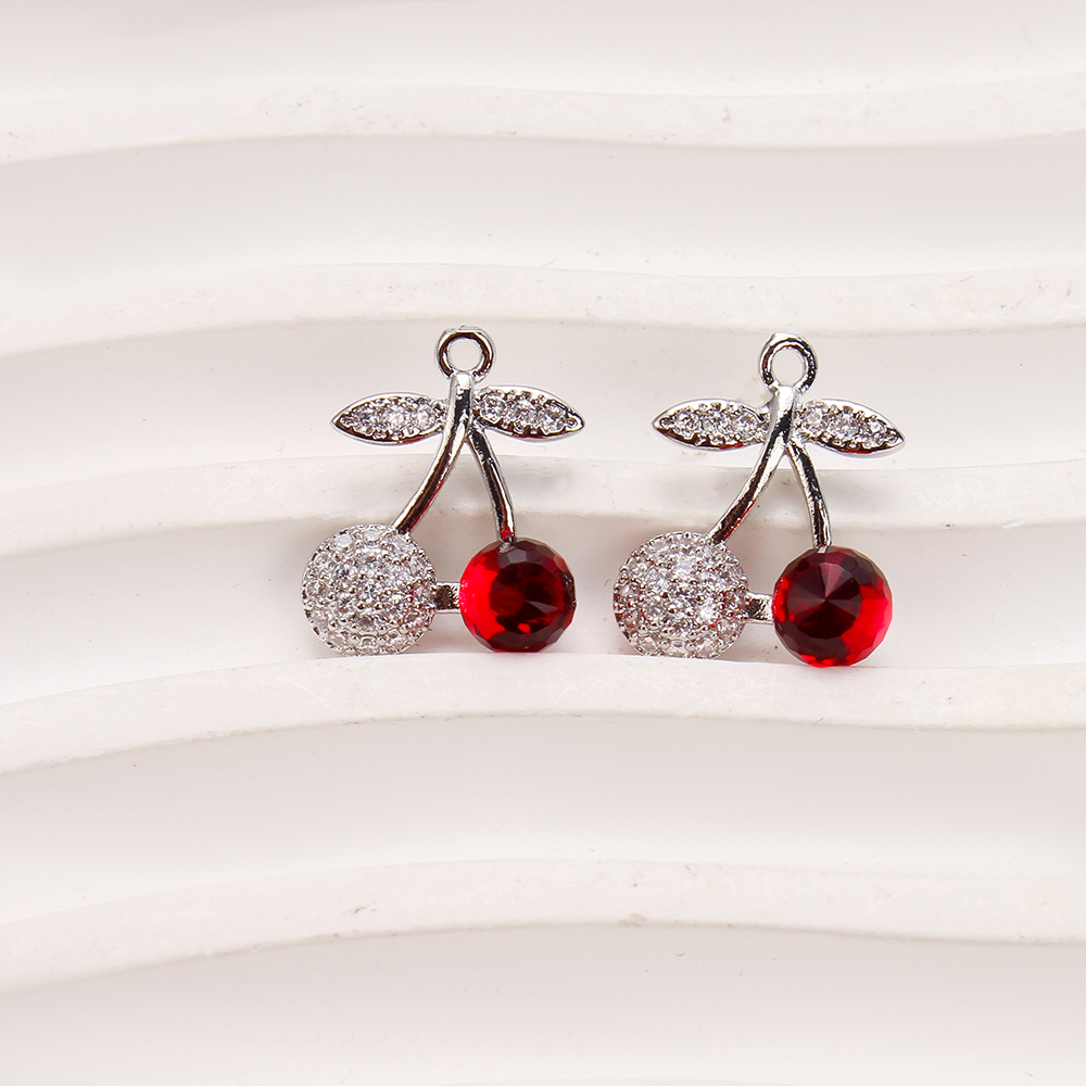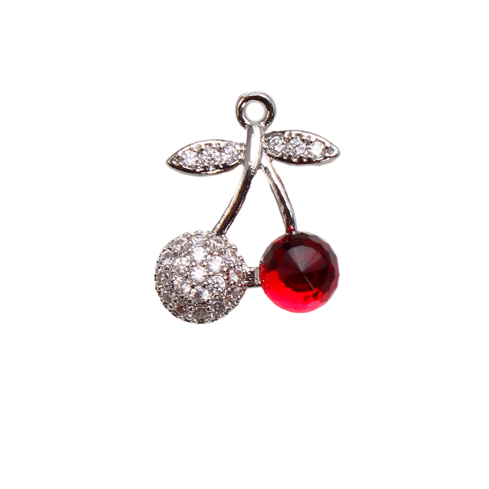 Crystal Brass Pendants, with Crystal, Cherry, plated, DIY & micro pave cubic zirconia, silver color, 13.81x6.95x16.76mm, 20PCs/Bag, Sold By Bag