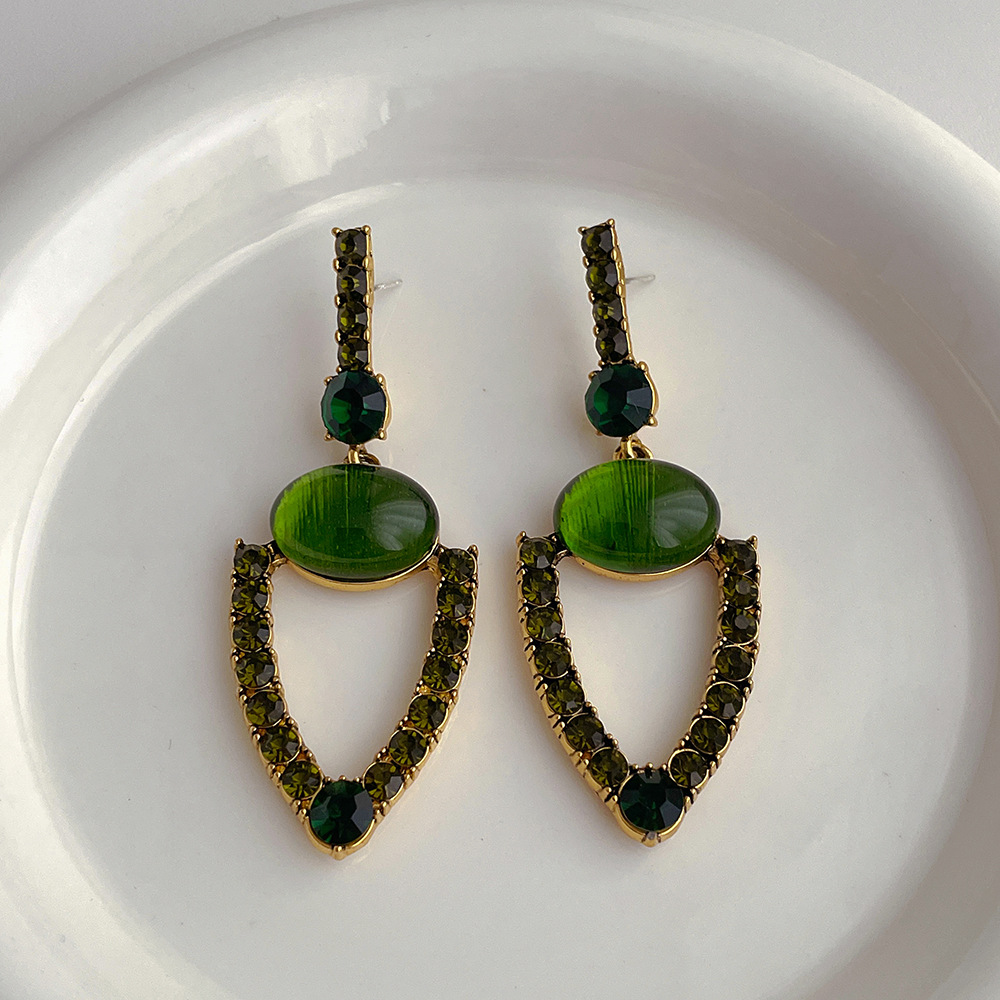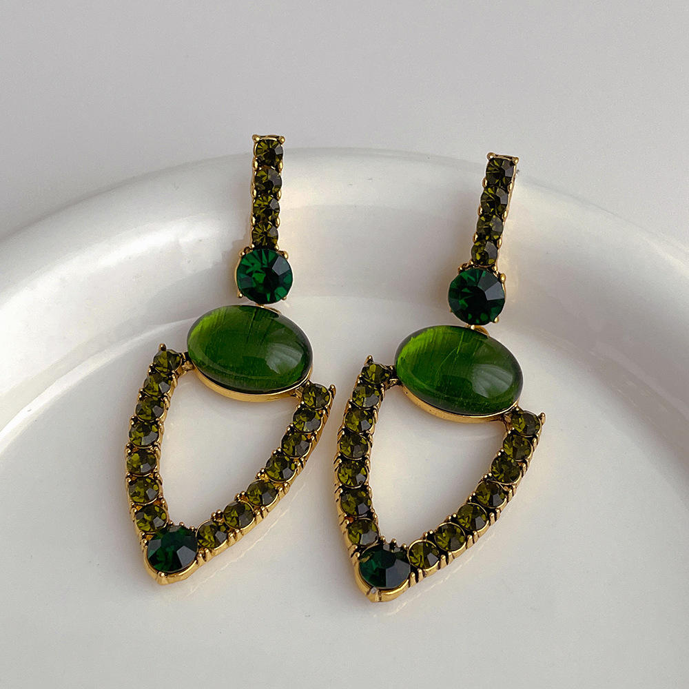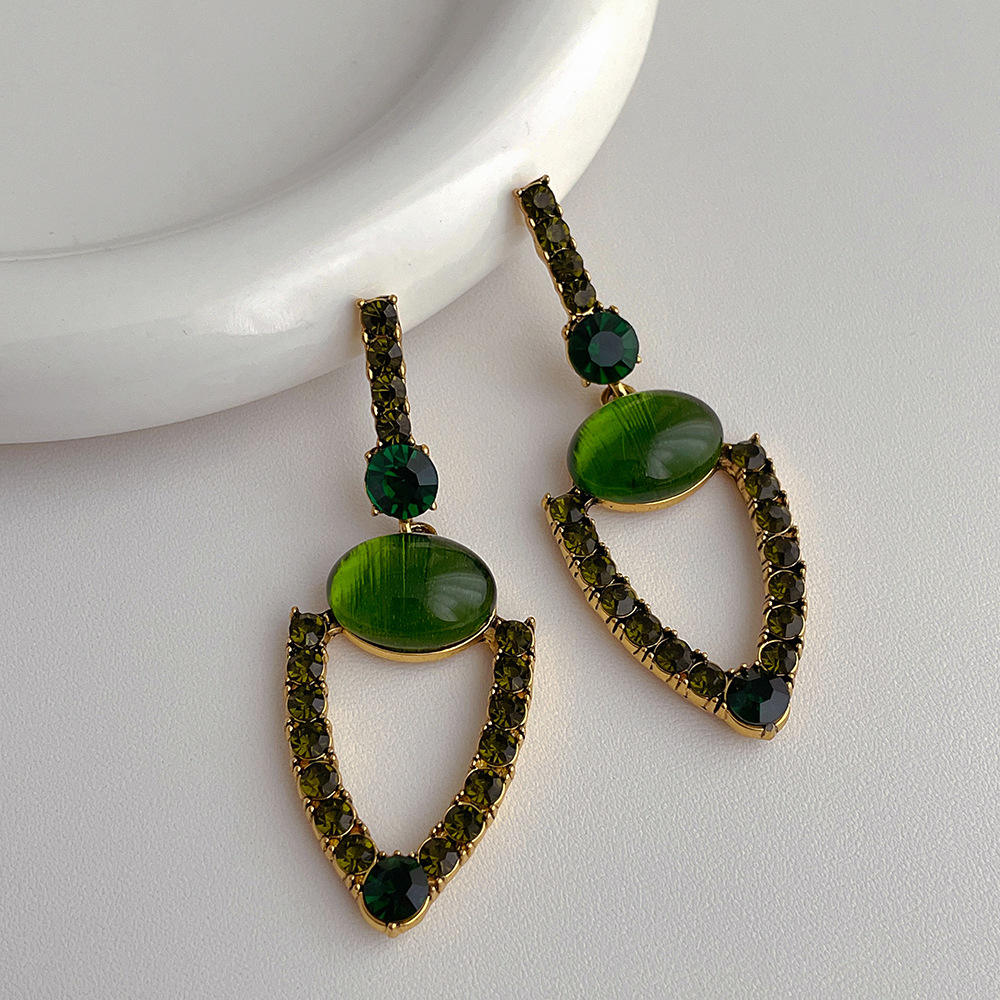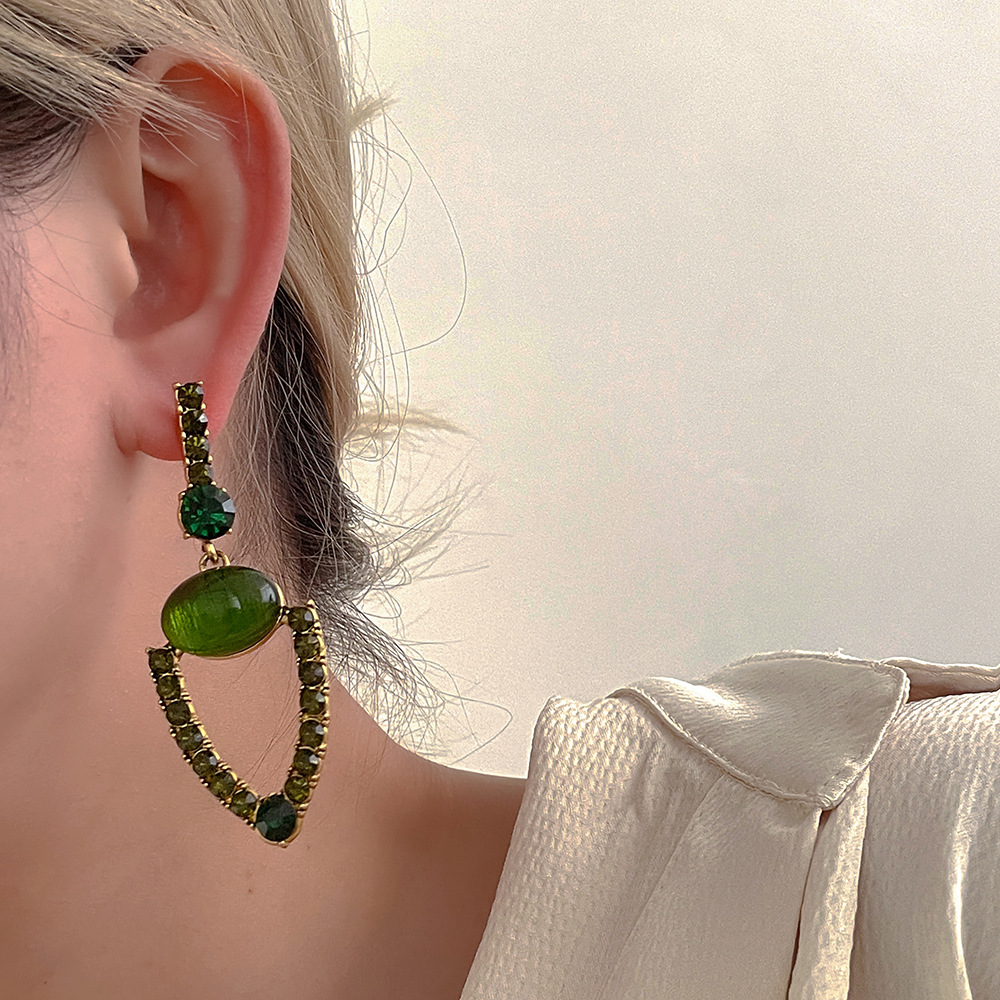 Crystal Drop Earring, Brass, with Crystal, plated, fashion jewelry & micro pave cubic zirconia, green, 70x25mm, Sold By Pair