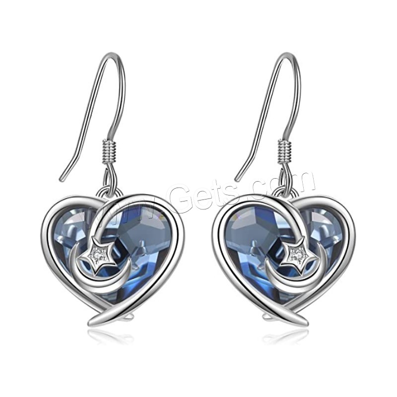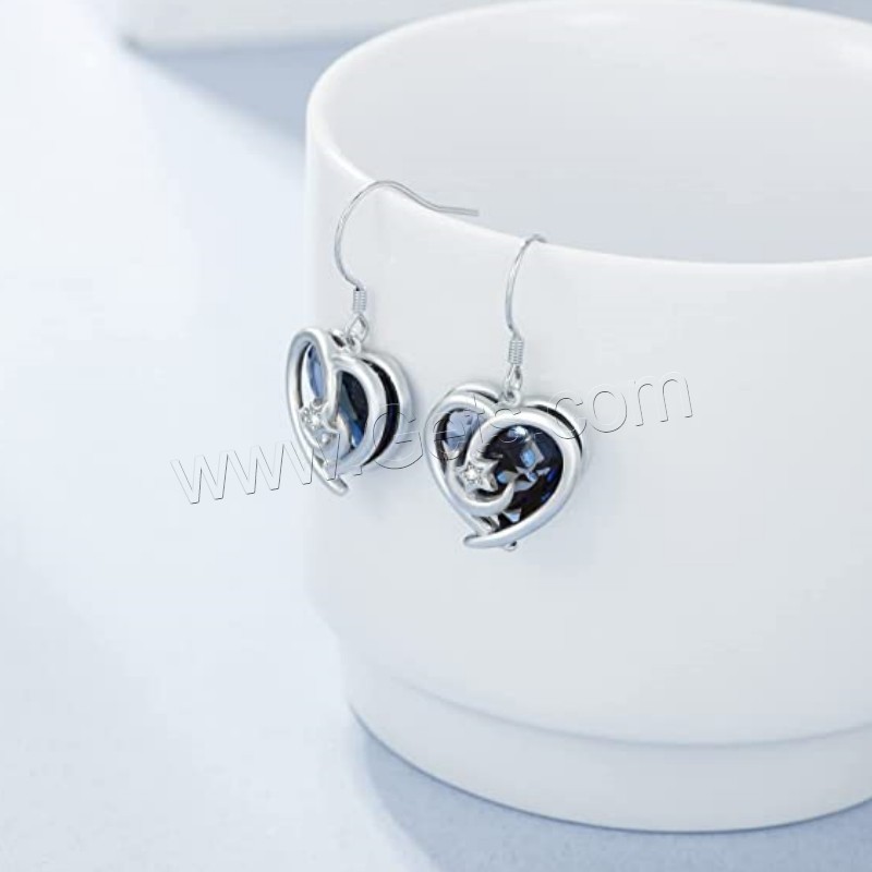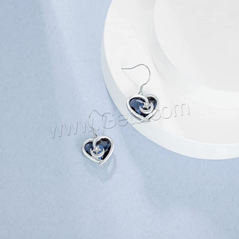Crystal Drop Earring, Zinc Alloy, with Crystal, Heart, silver color plated, fashion jewelry & for woman & faceted, blue, 16.2x30mm, Sold By Pair