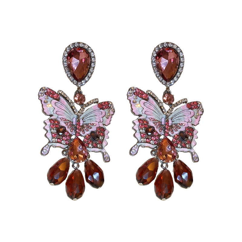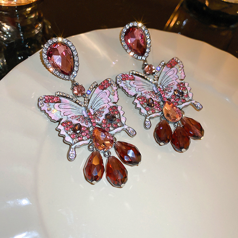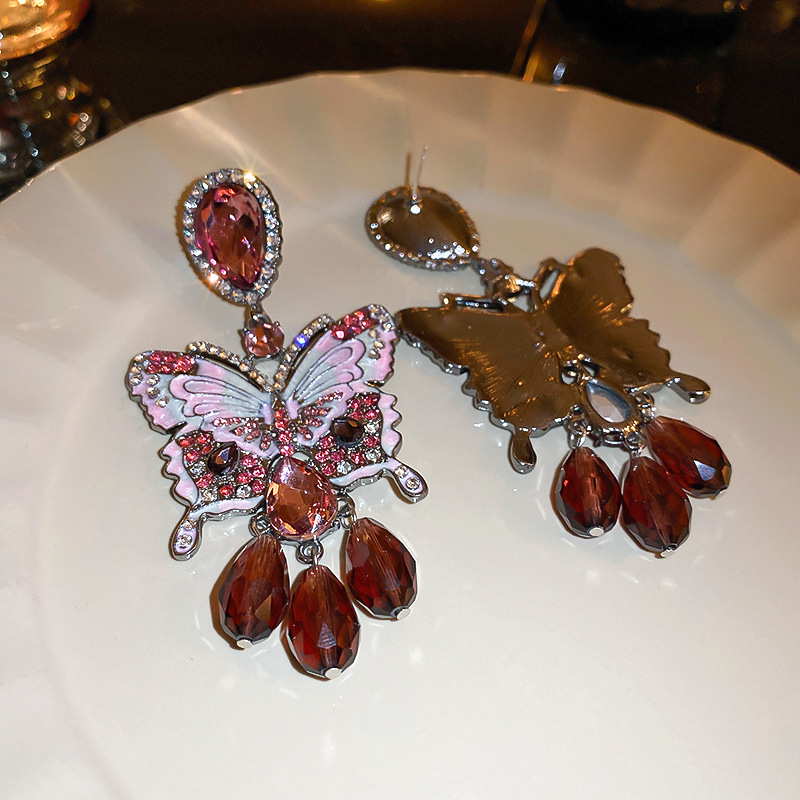 Crystal Drop Earring, Zinc Alloy, with Crystal, Butterfly, fashion jewelry & for woman & with rhinestone, deep red, 90x45mm, Sold By Pair