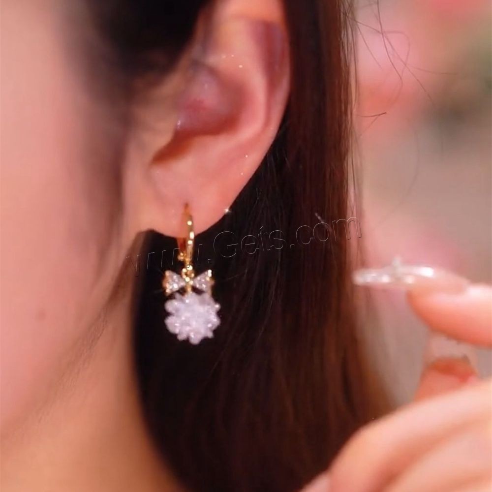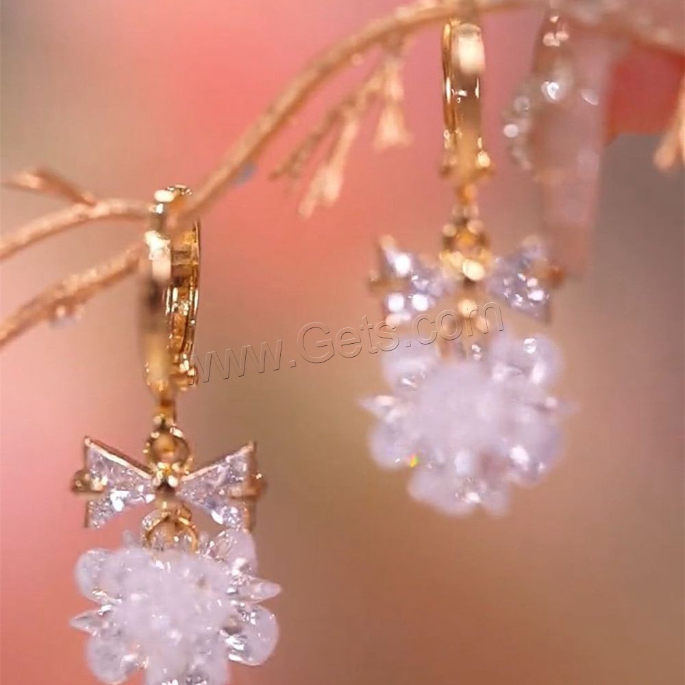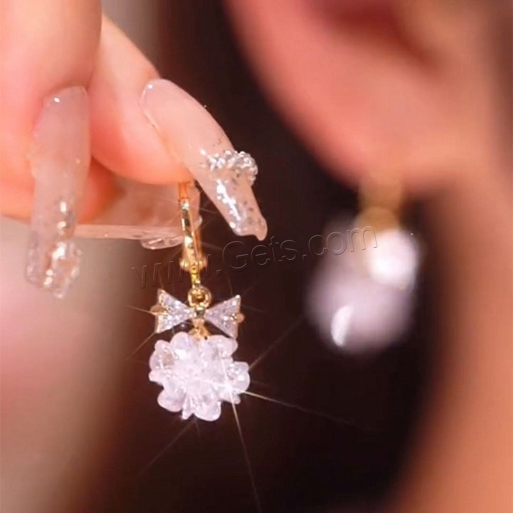 Crystal Drop Earring, with Zinc Alloy, Flower, gold color plated, micro pave cubic zirconia & for woman, 10x30mm, Sold By Pair