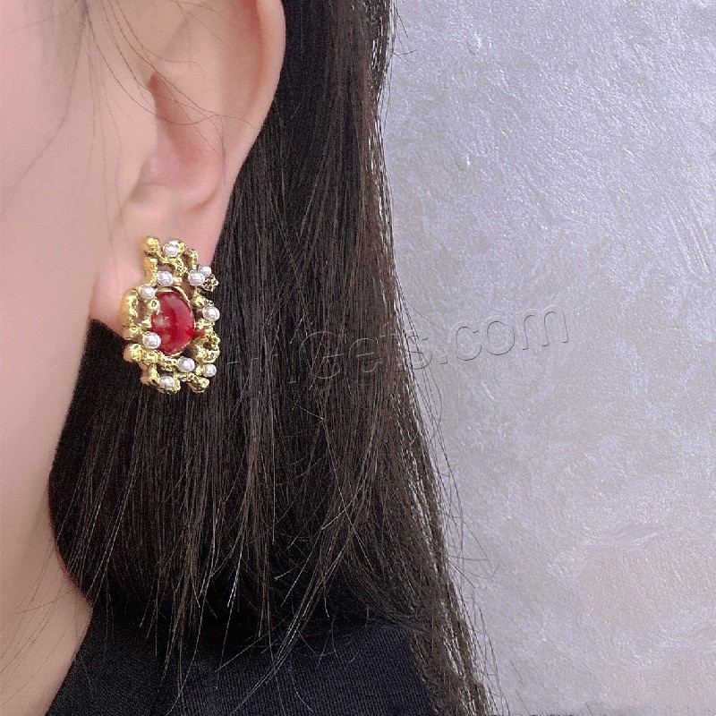 Crystal Jewelry Earring, Zinc Alloy, with Crystal & Plastic Pearl, fashion jewelry & for woman, 25mm, Sold By Pair