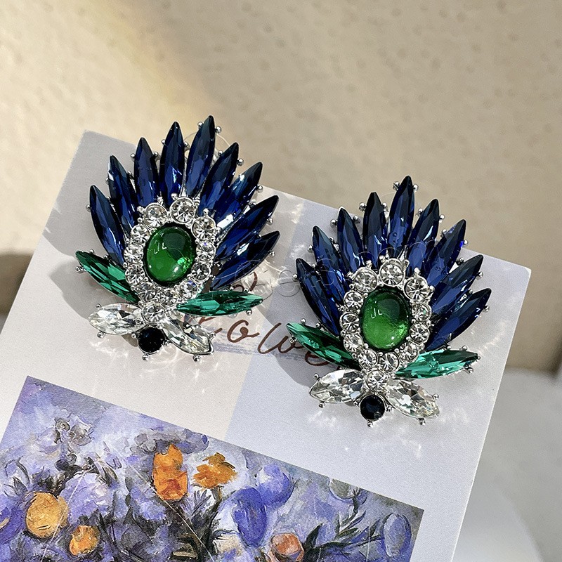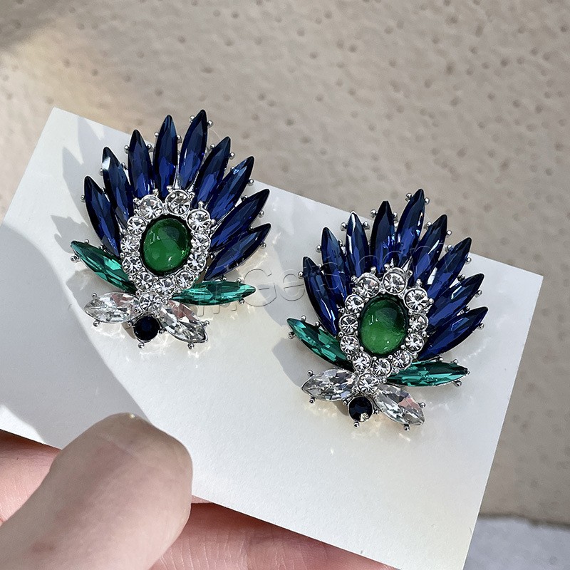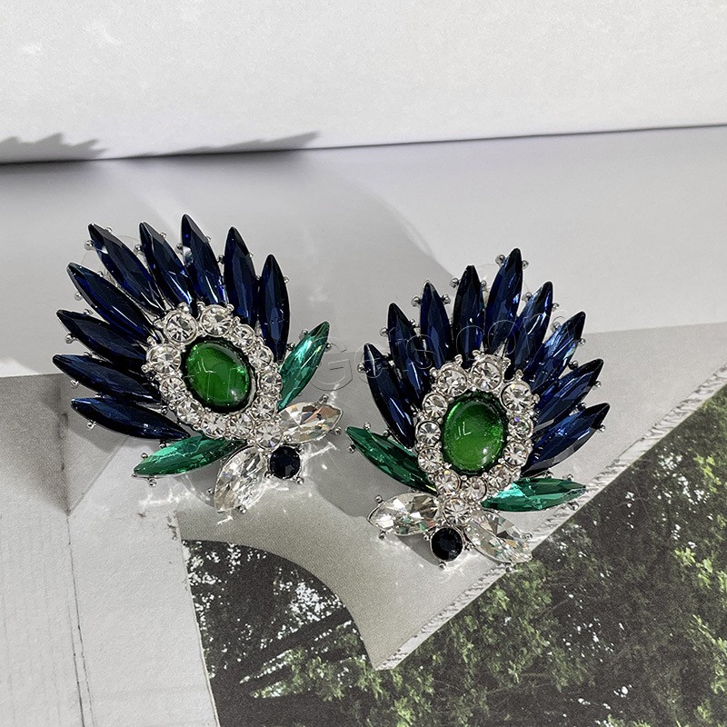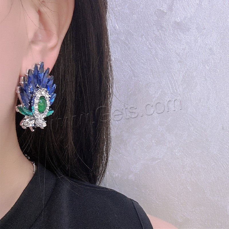 Crystal Jewelry Earring, Zinc Alloy, with plastic earnut & Crystal, stainless steel post pin, Leaf, plated, for woman & faceted lead & cadmium free, 25mm
