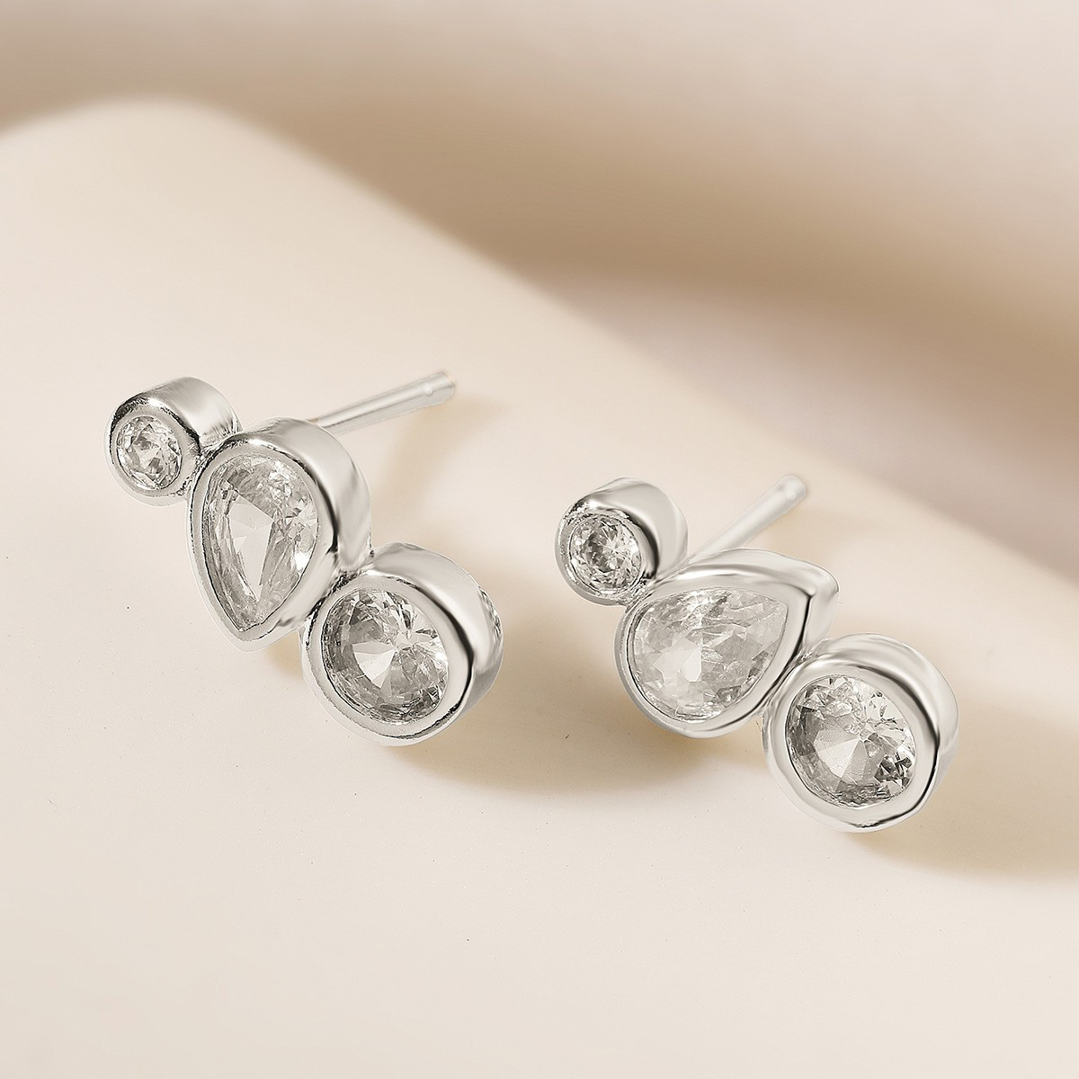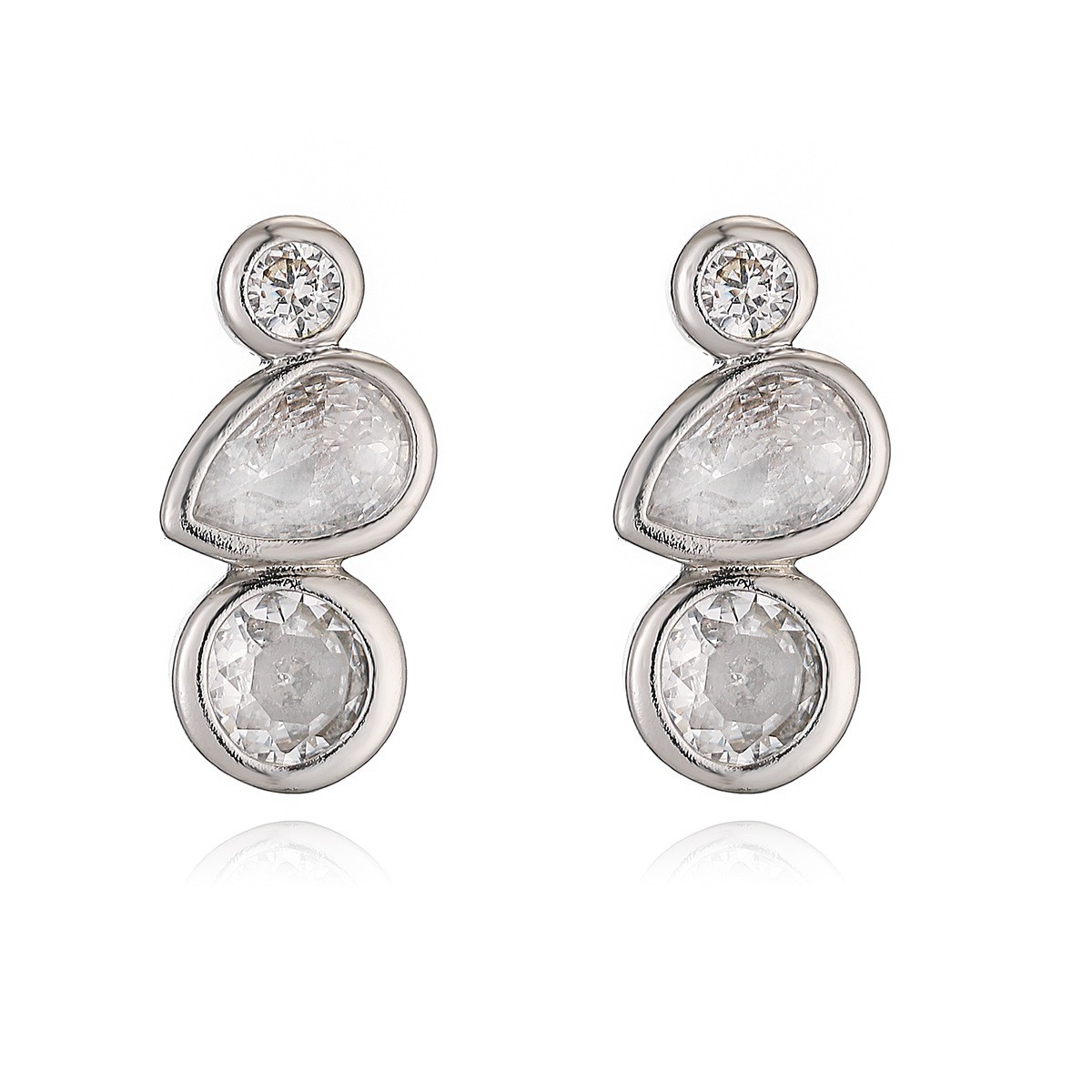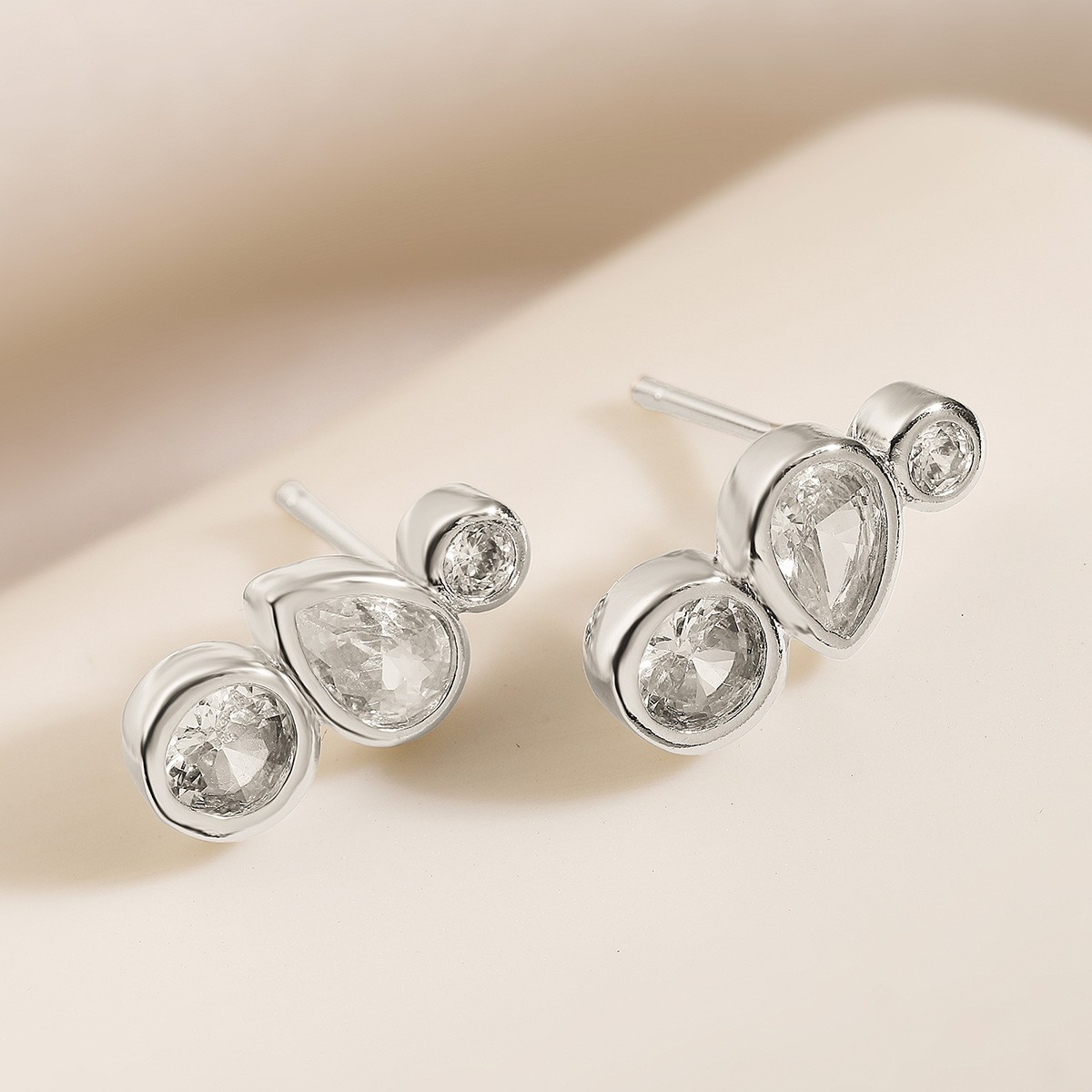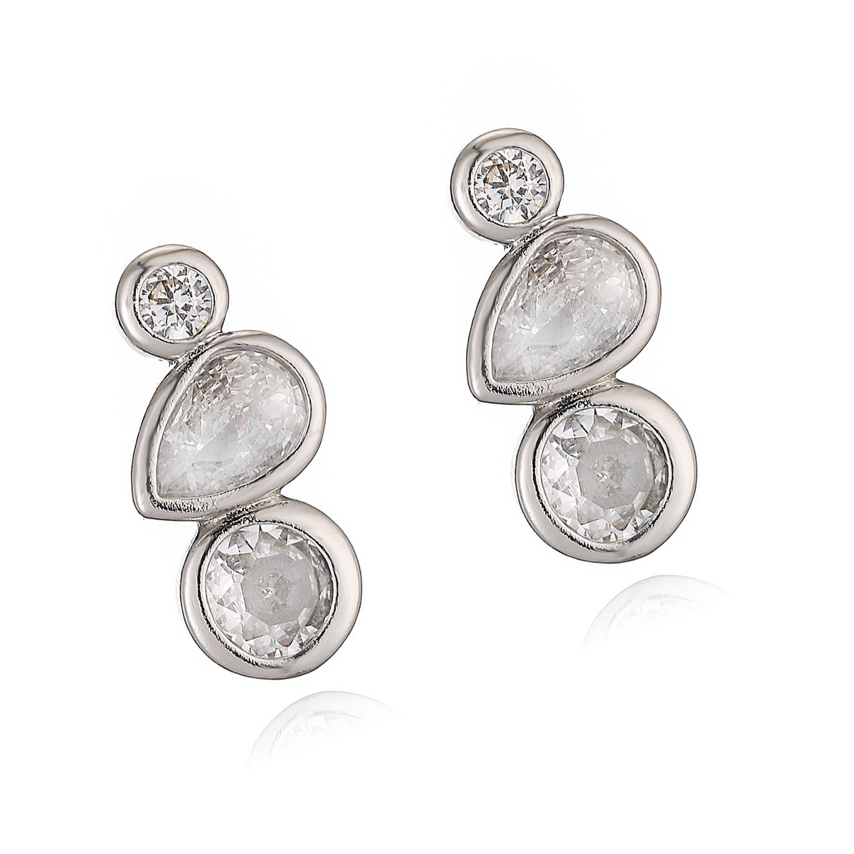 Cubic Zircon Brass Earring, platinum plated, with cubic zirconia