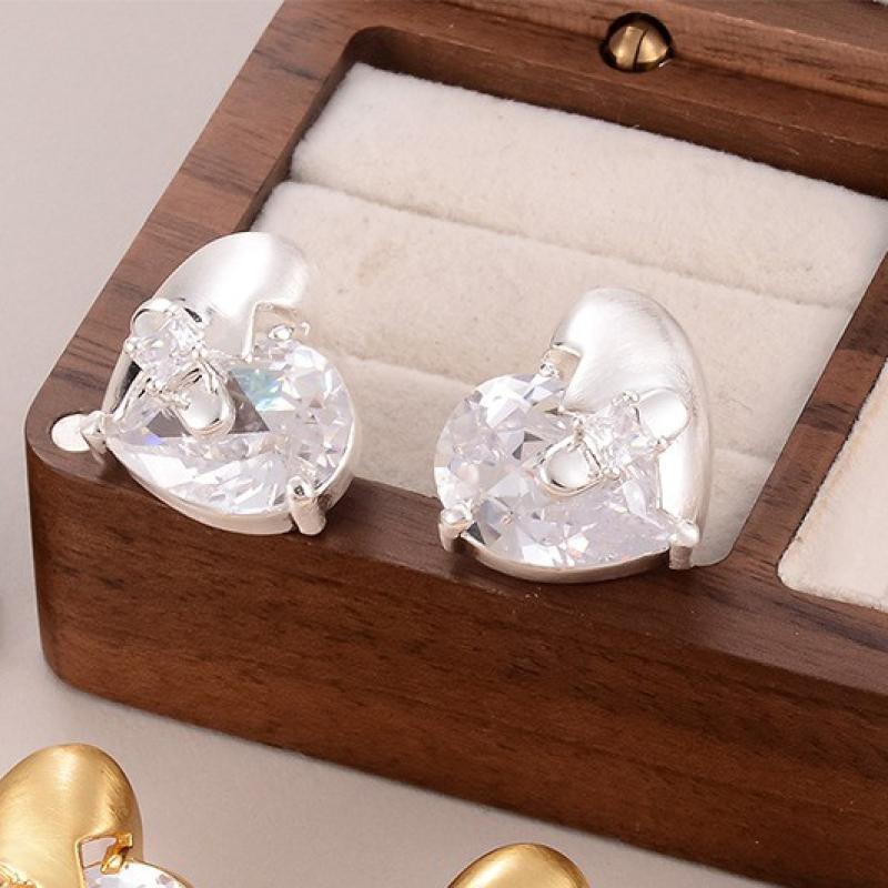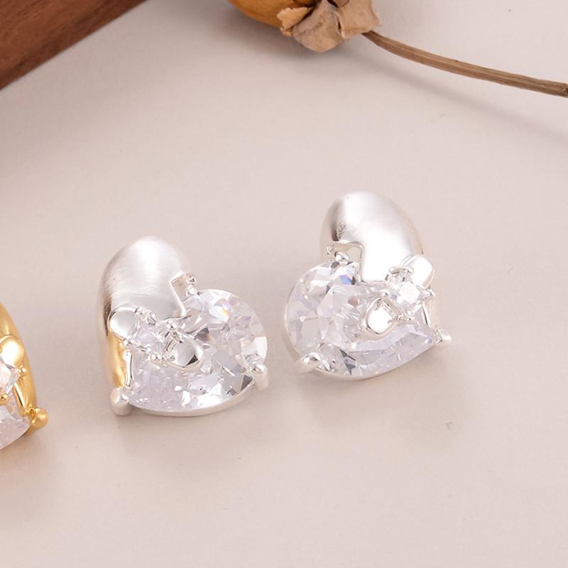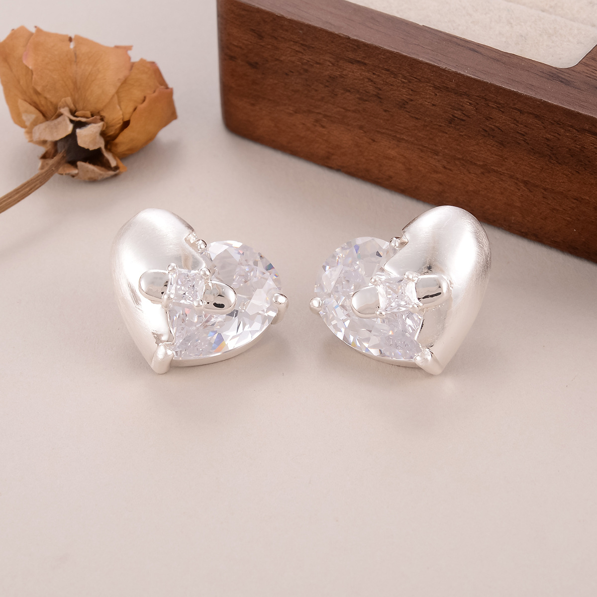 Cubic Zircon Brass Earring, with Cubic Zirconia, Heart, plated, fashion jewelry & for woman, silver color, Sold By Pair