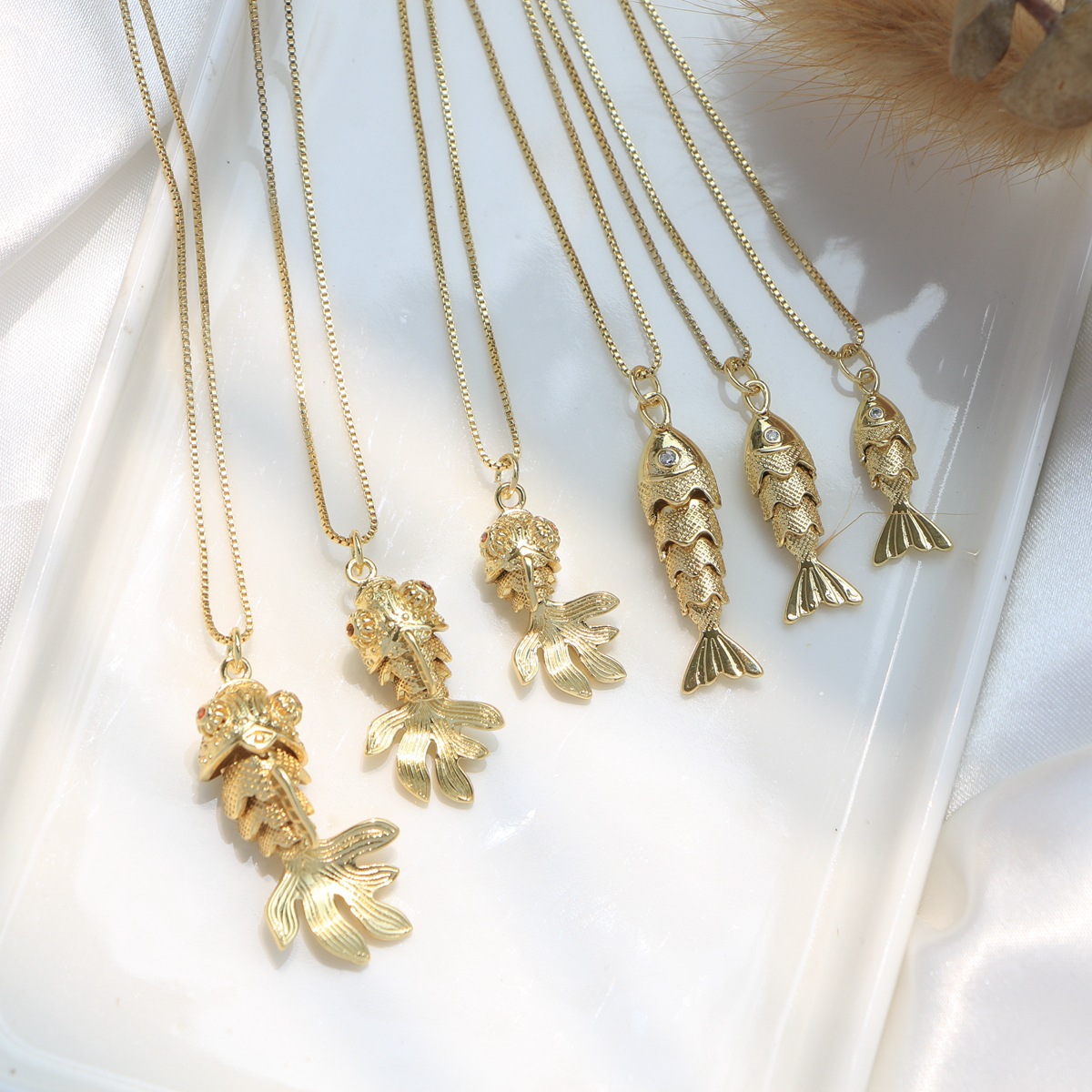 Cubic Zircon Micro Pave Brass Necklace, Fish, plated, fashion jewelry & micro pave cubic zirconia, more colors for choice, nickel, lead & cadmium free, Sold By PC