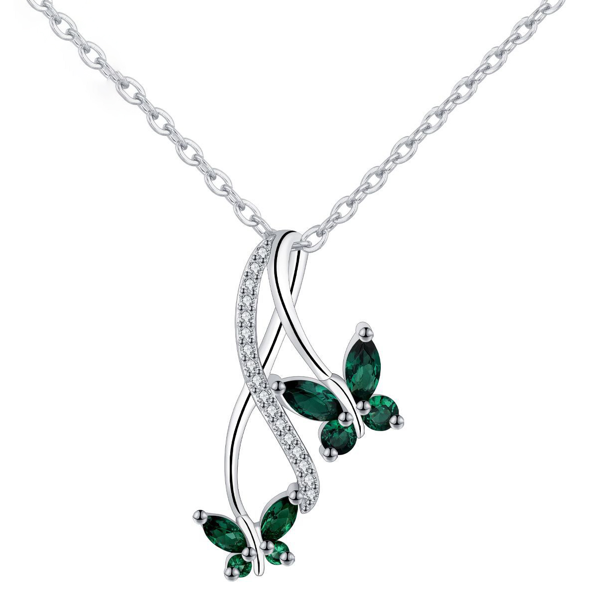 Cubic Zircon Micro Pave Brass Necklace, Spirit, platinum plated, oval chain & micro pave cubic zirconia & for woman Approx 15.5 Inch