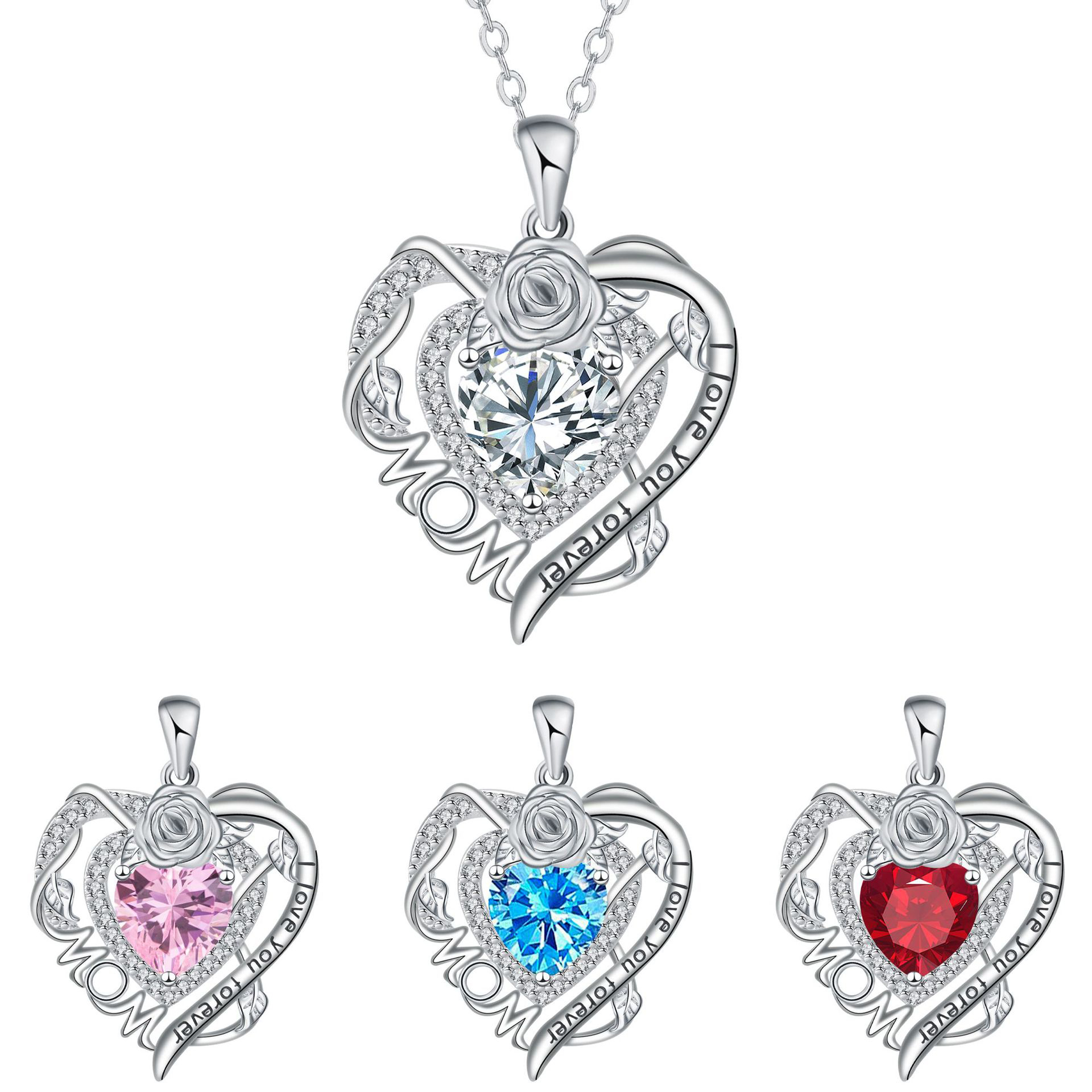 Cubic Zircon Micro Pave Brass Necklace, with 5cm extender chain, Heart, silver color plated, oval chain & micro pave cubic zirconia & for woman, more colors for choice, 23x25mm, Length:Approx 45 cm, Sold By Strand