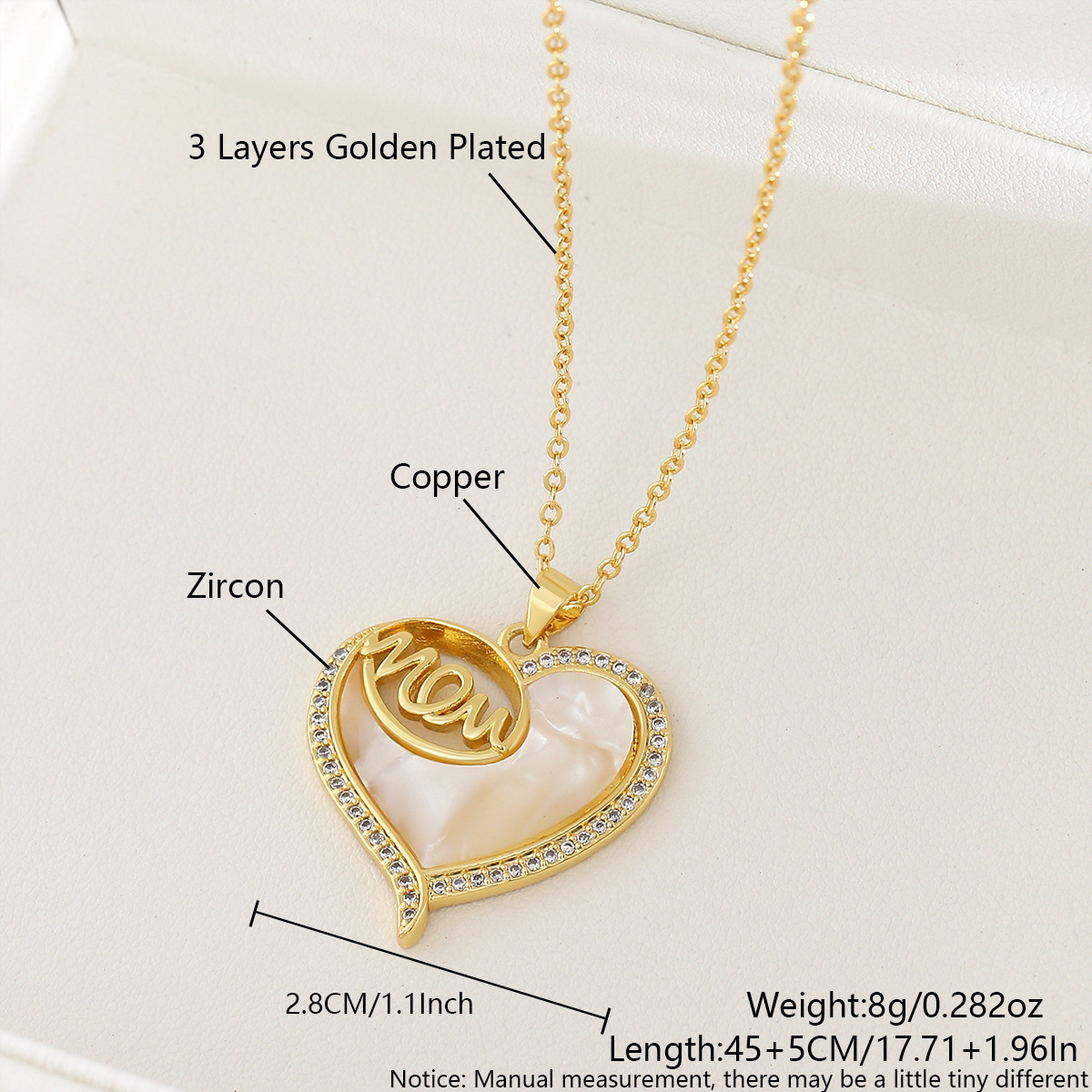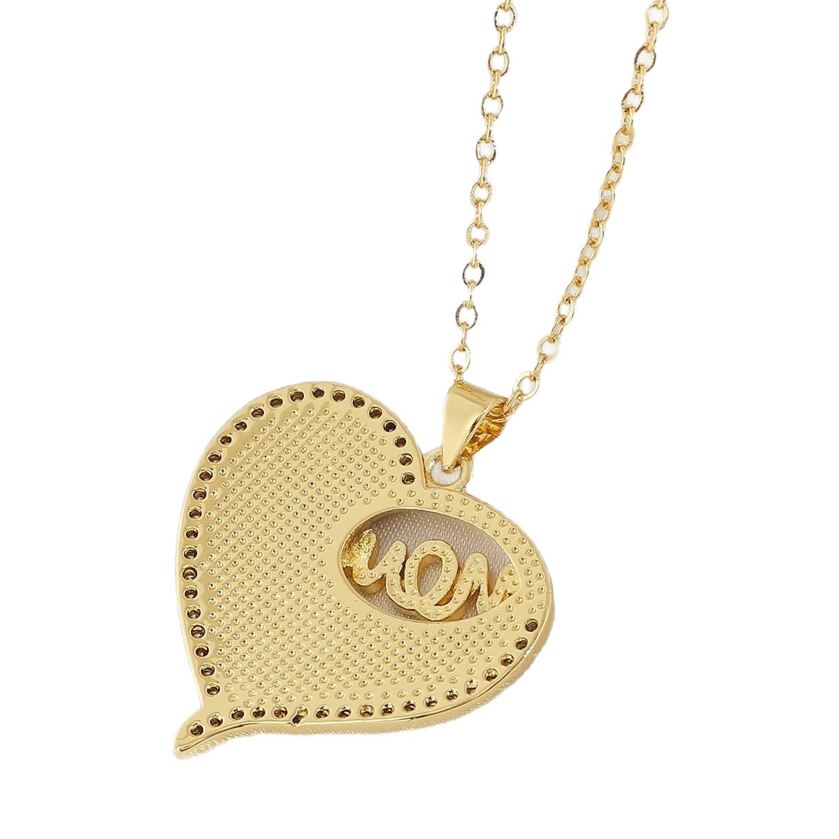 Cubic Zircon Micro Pave Brass Necklace, Heart, real gold plated, oval chain & micro pave cubic zirconia & for woman, lead & cadmium free, 40cm Approx 15.5 Inch