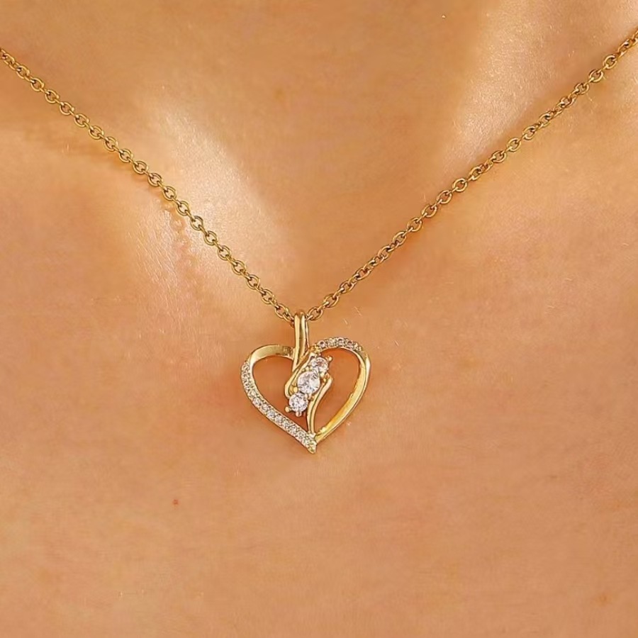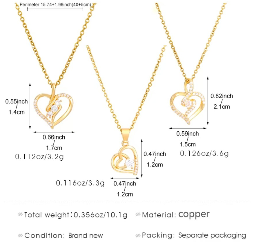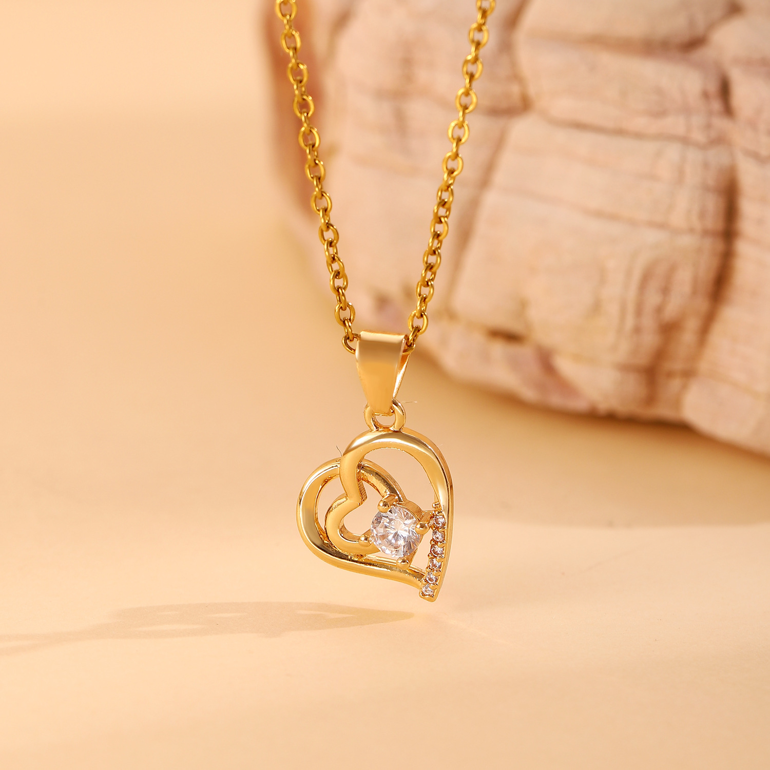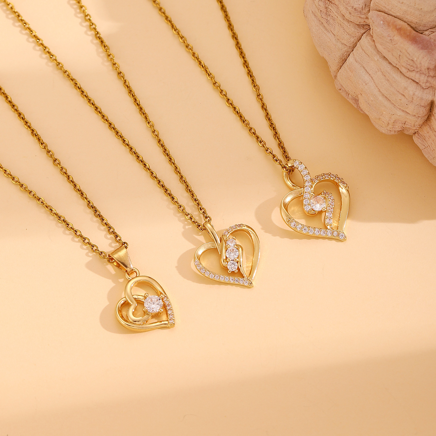 Cubic Zircon Micro Pave Brass Necklace, Heart, real gold plated, oval chain & micro pave cubic zirconia & for woman, lead & cadmium free, 40cm Approx 15.5 Inch