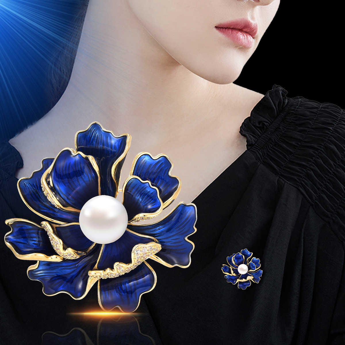 Cubic Zirconia Brooch, Brass, with Shell Pearl, micro pave cubic zirconia & for woman, golden, 48x49mm, Sold By PC