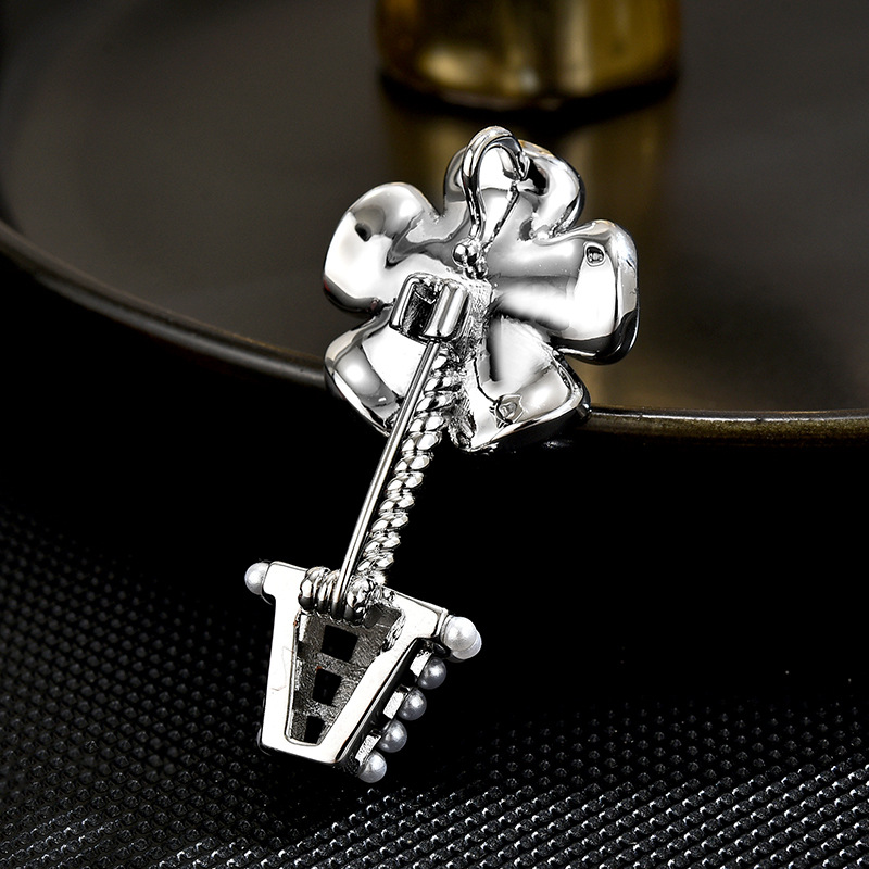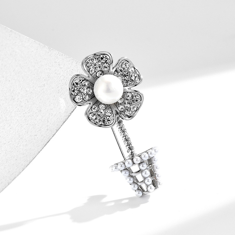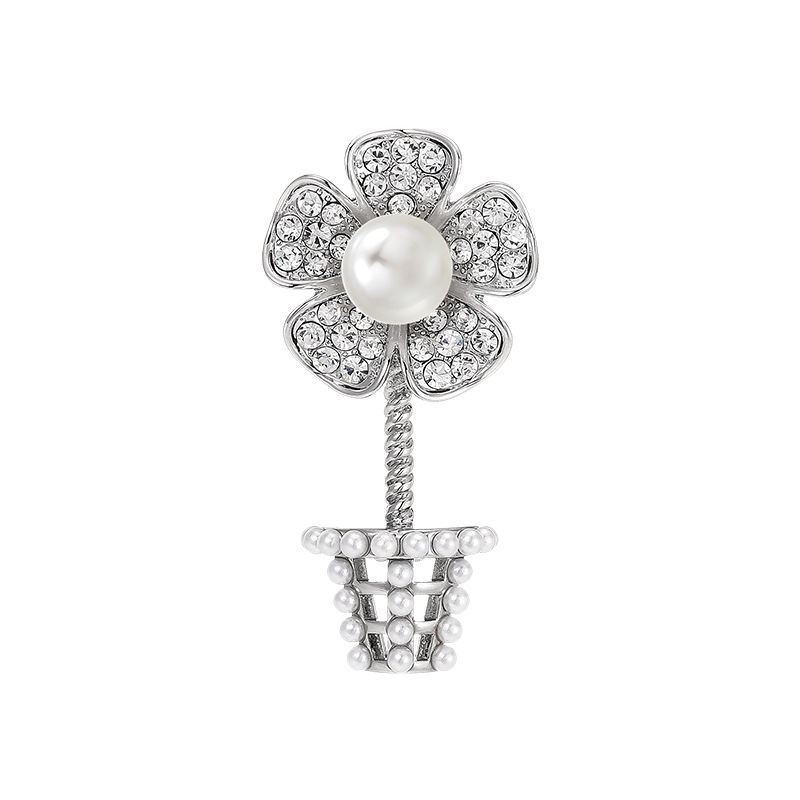 Cubic Zirconia Brooch, Brass, Flower, platinum plated, micro pave cubic zirconia & faceted