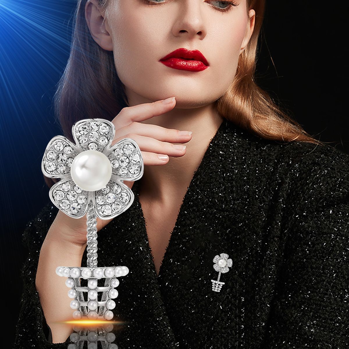 Cubic Zirconia Brooch, Brass, Flower, plated, with cubic zirconia & faceted