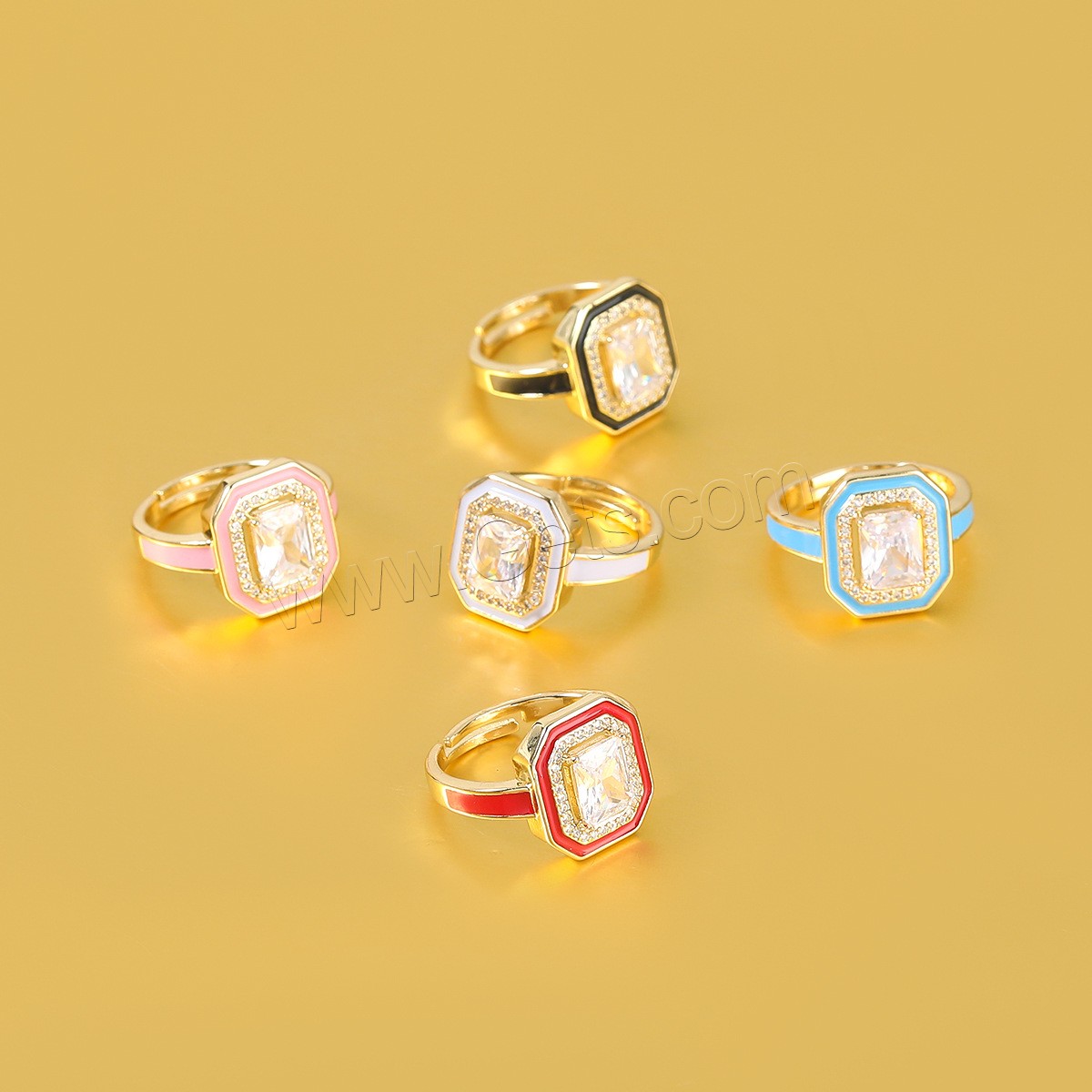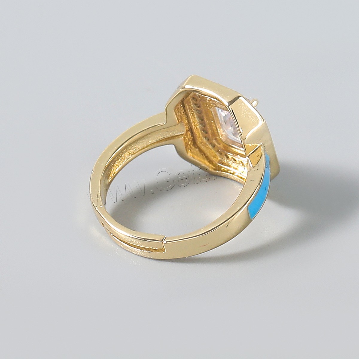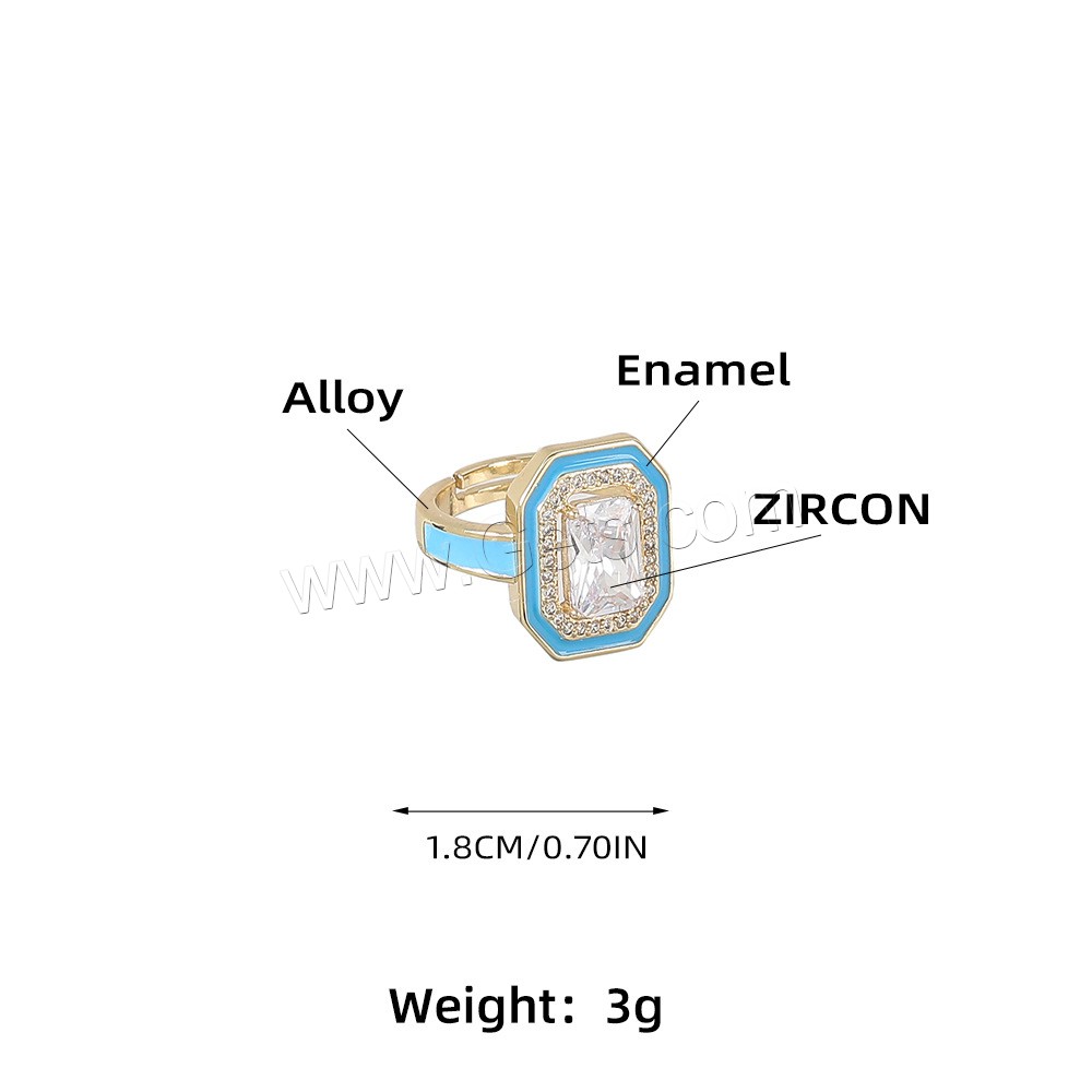 Cubic Zirconia Finger Ring, Brass, gold color plated, Unisex & micro pave cubic zirconia & enamel, more colors for choice, 18mm, Sold By PC