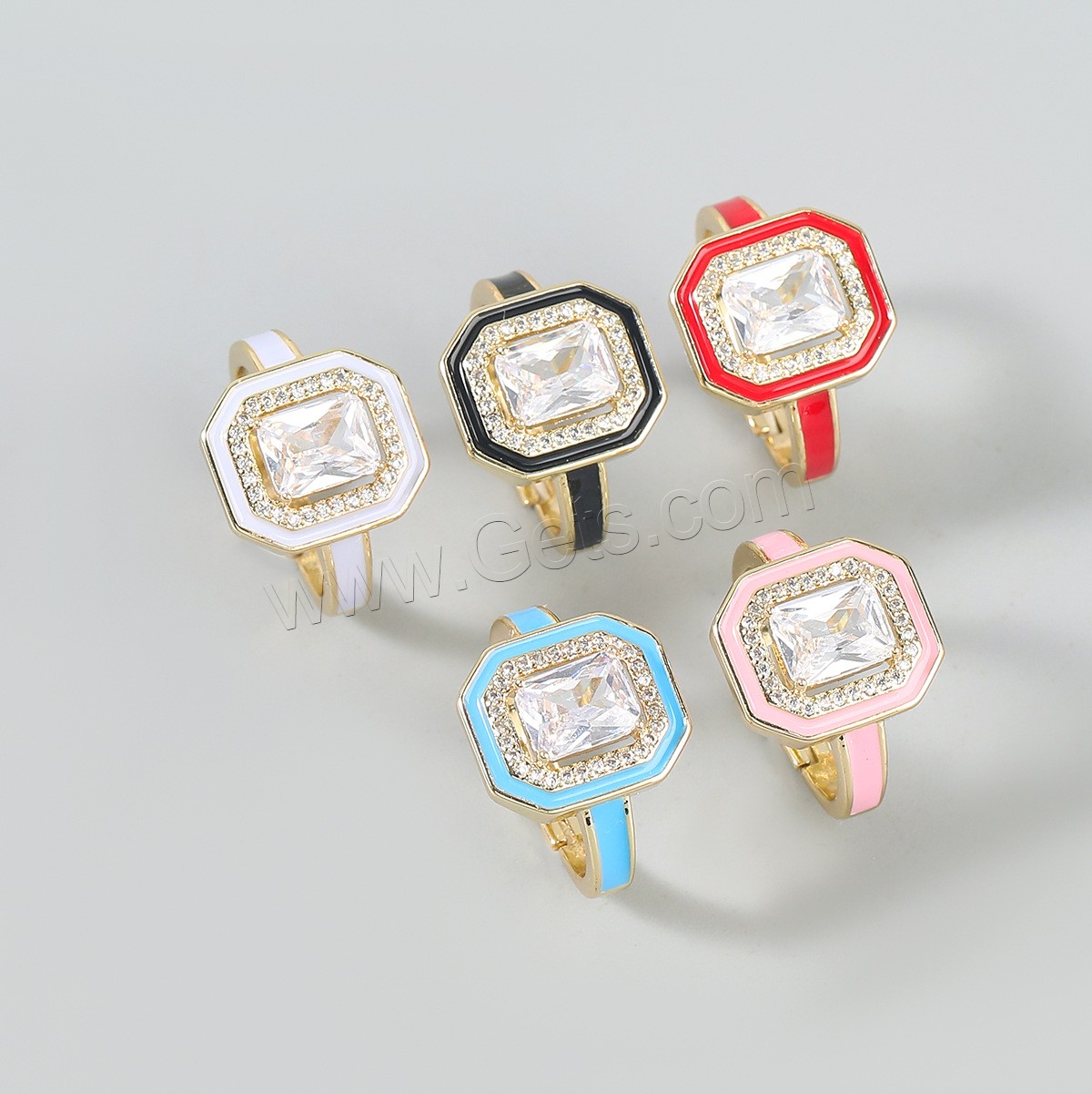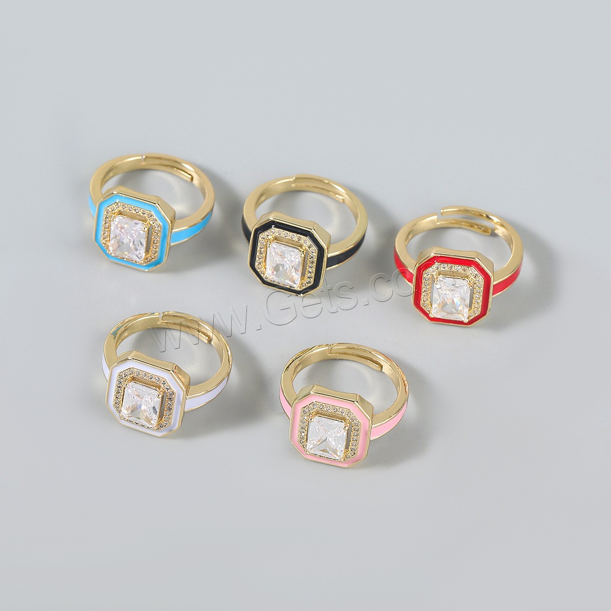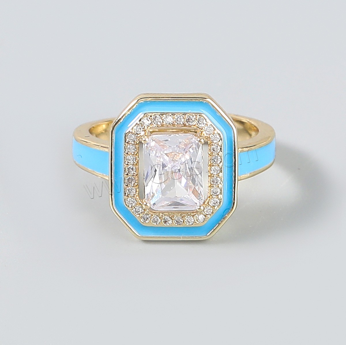 Cubic Zirconia Finger Ring, Brass, gold color plated, Unisex & micro pave cubic zirconia & enamel, more colors for choice, 18mm, Sold By PC