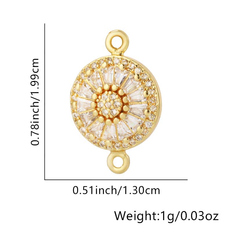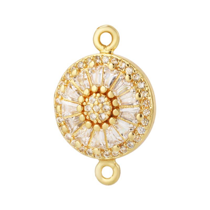 Cubic Zirconia Micro Pave Brass Connector, Flat Round, plated, with eye pattern & micro pave cubic zirconia & epoxy gel & 1/1 loop Approx 1mm