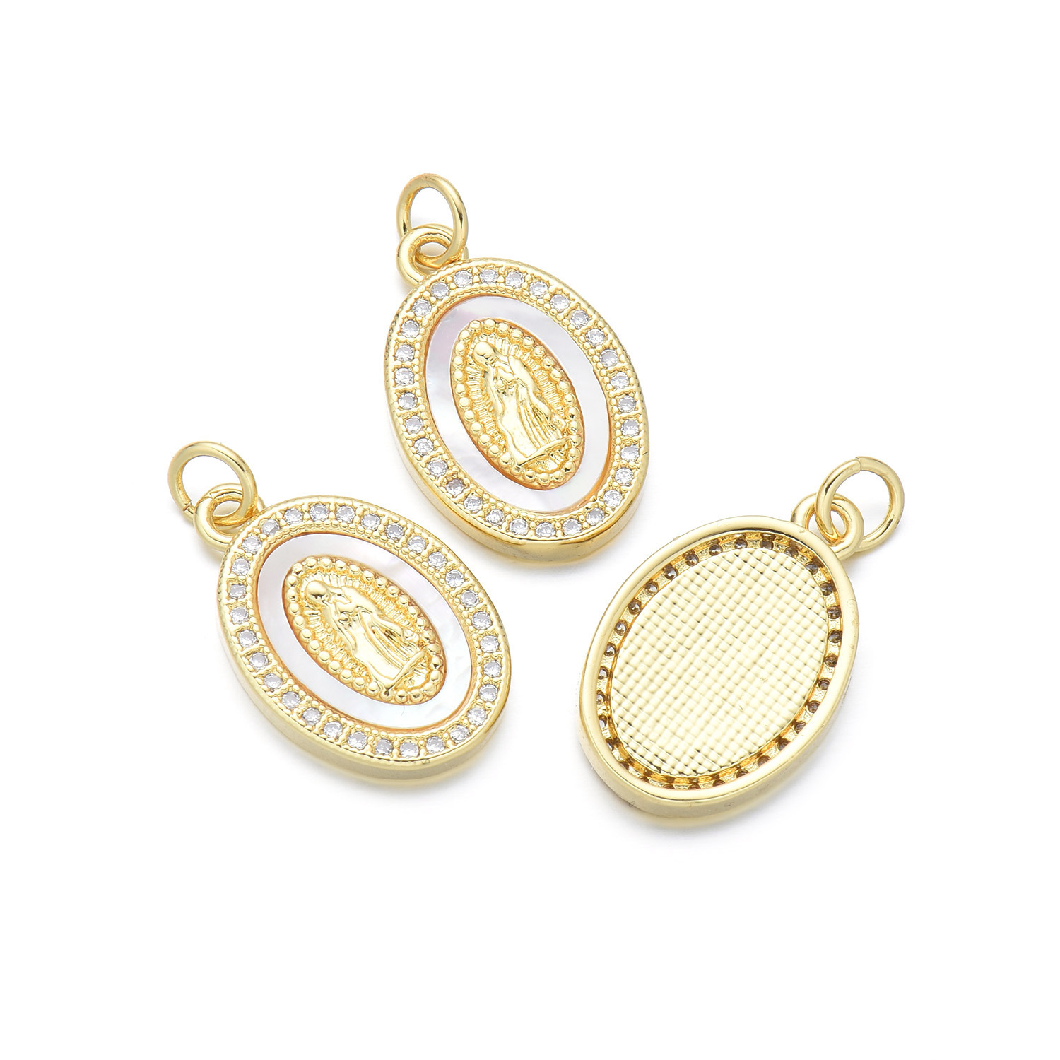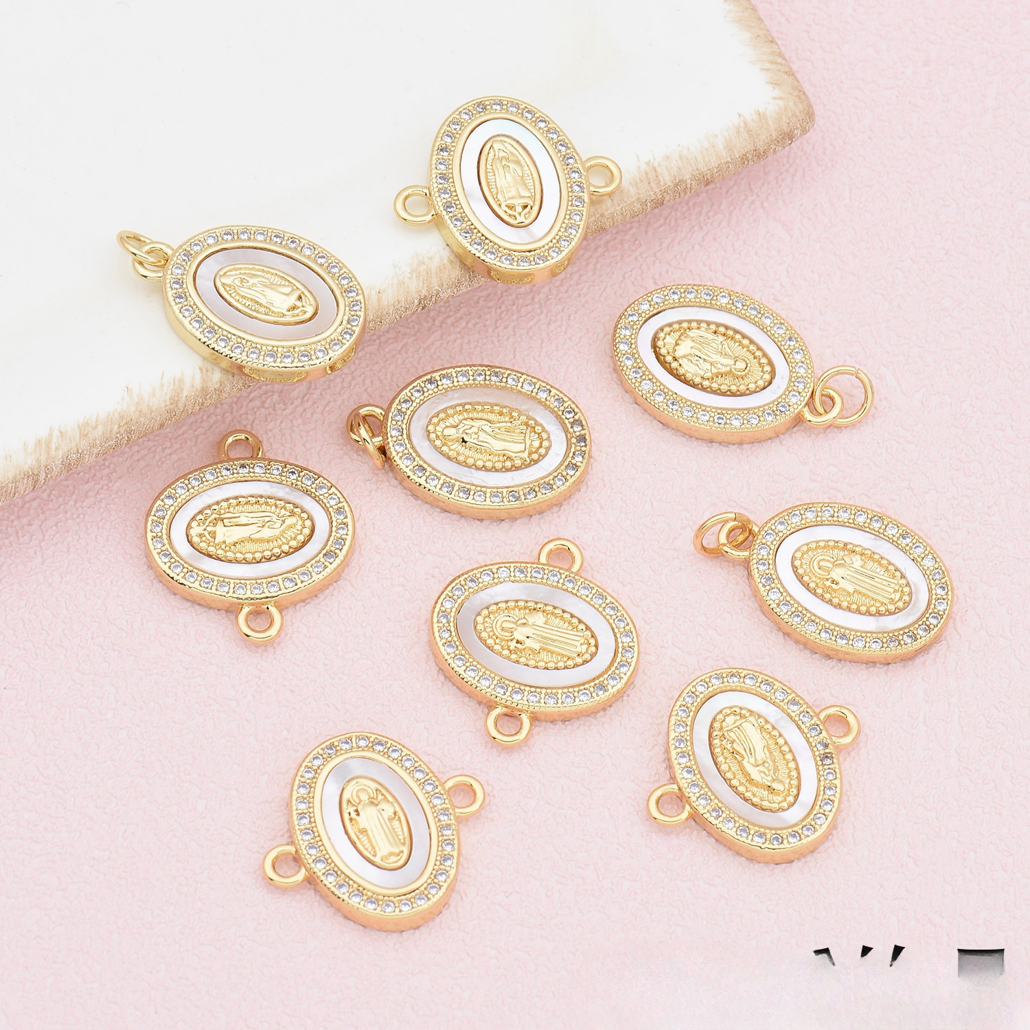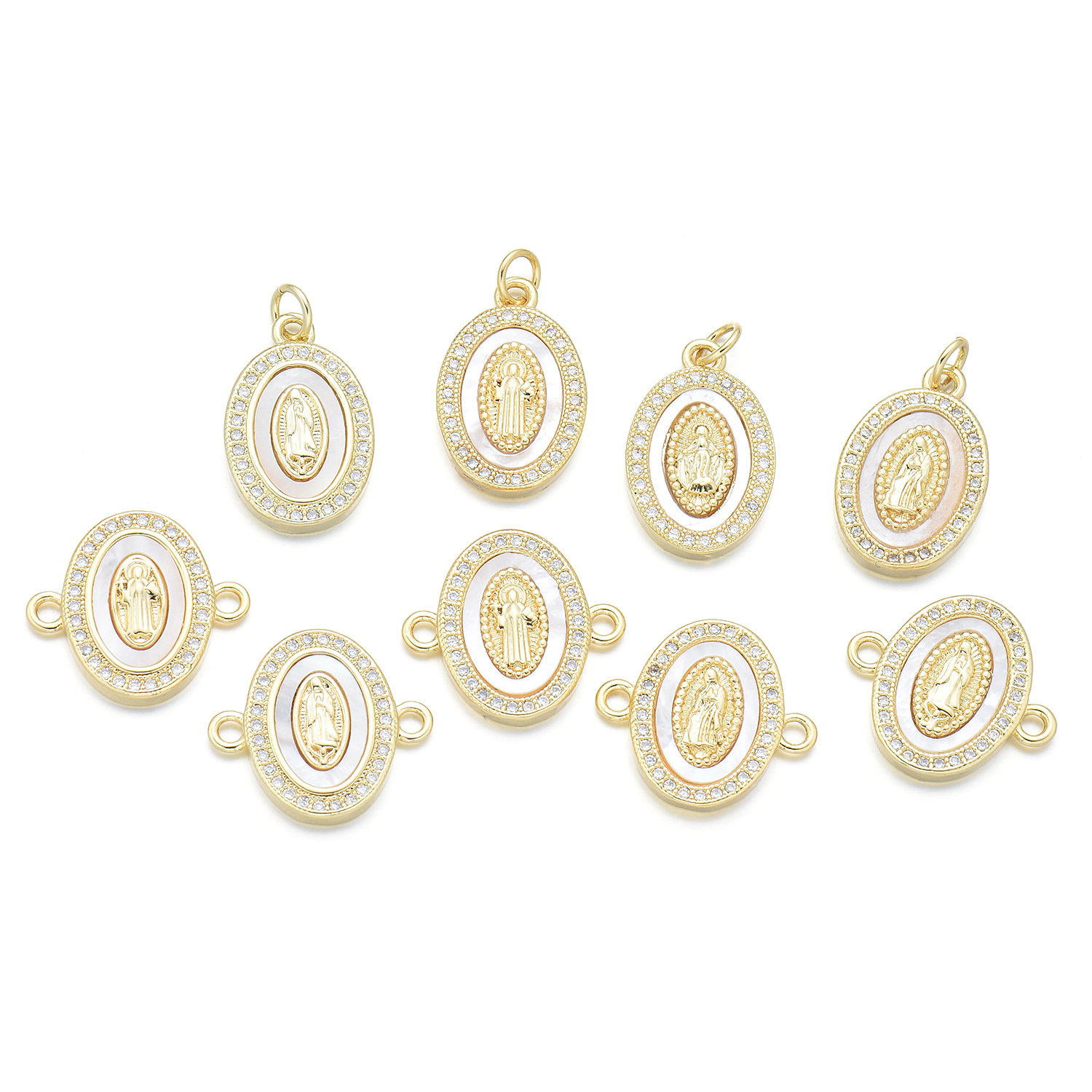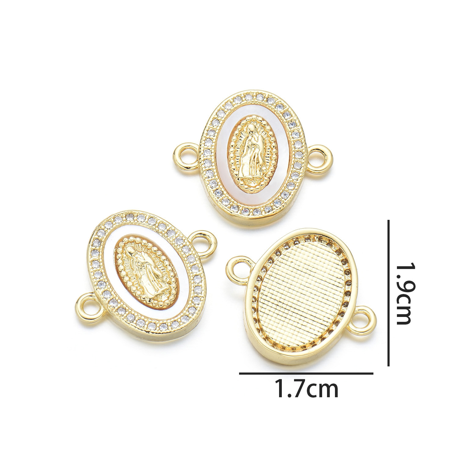 Cubic Zirconia Micro Pave Brass Connector, with White Shell, gold color plated, DIY & 1/1 loop, more colors for choice, nickel, lead & cadmium free, Sold By PC