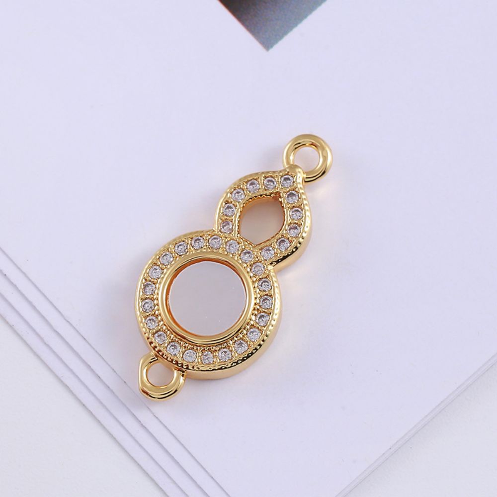 Cubic Zirconia Micro Pave Brass Connector, Flat Round, plated, with eye pattern & micro pave cubic zirconia & epoxy gel & 1/1 loop Approx 1mm