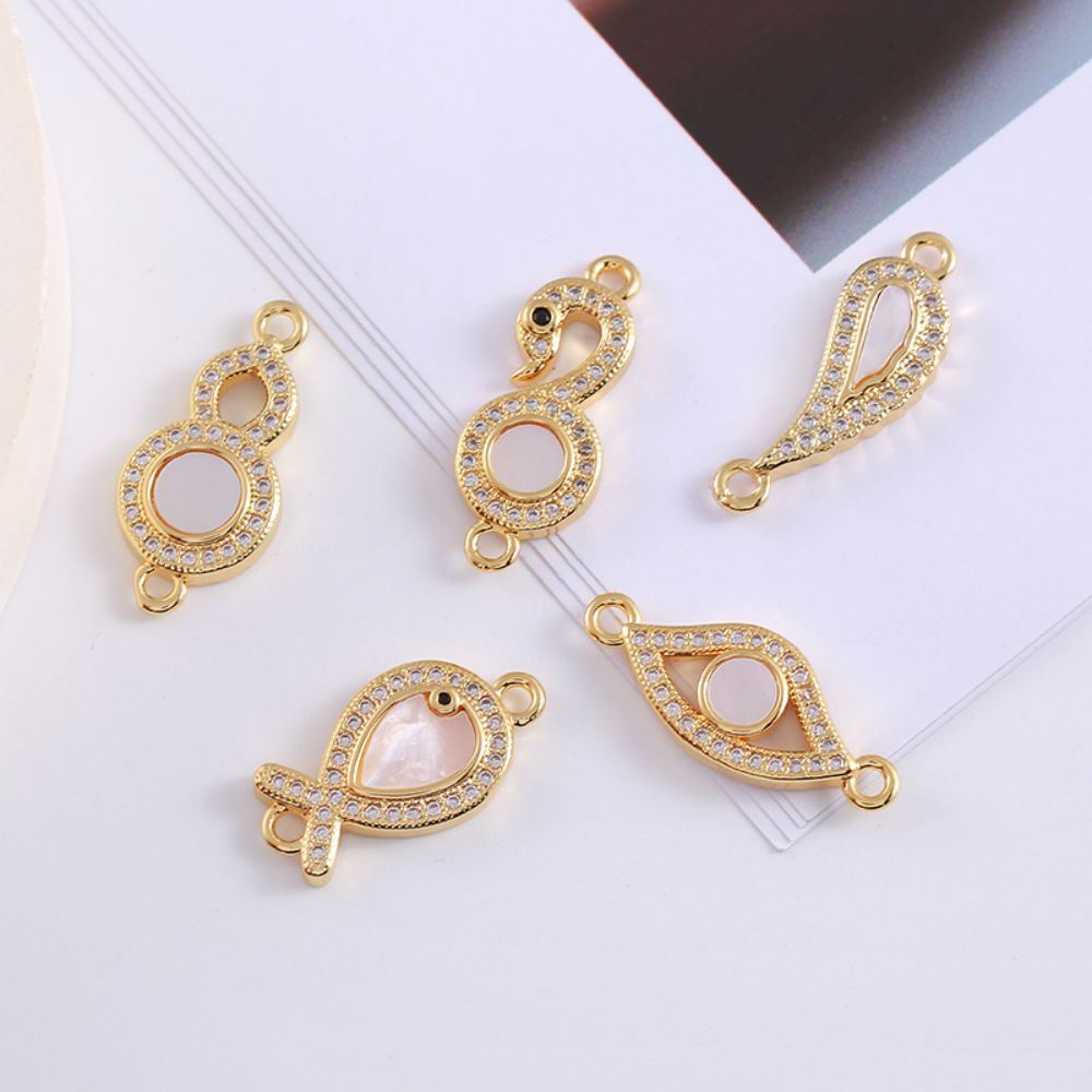 Cubic Zirconia Micro Pave Brass Connector, with White Shell, plated, DIY & micro pave cubic zirconia, more colors for choice, 5PCs/Bag, Sold By Bag