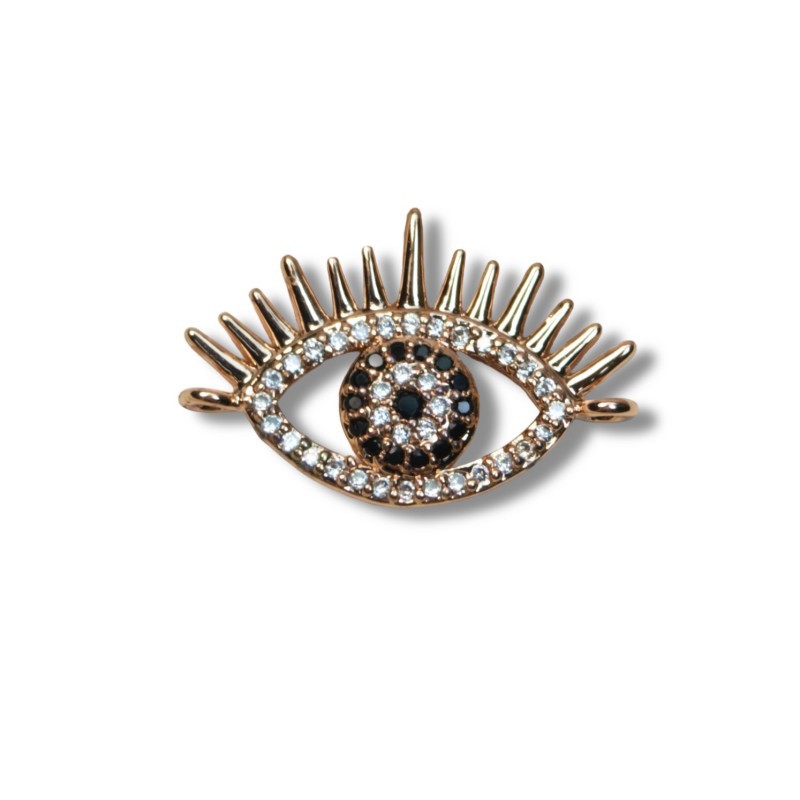 Cubic Zirconia Micro Pave Brass Connector, Flat Round, plated, with eye pattern & micro pave cubic zirconia & epoxy gel & 1/1 loop Approx 1mm