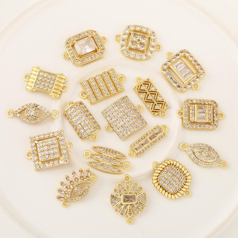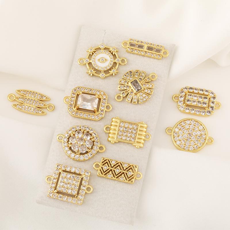 Cubic Zirconia Micro Pave Brass Connector, gold color plated, DIY & different styles for choice & enamel & with rhinestone, Sold By PC