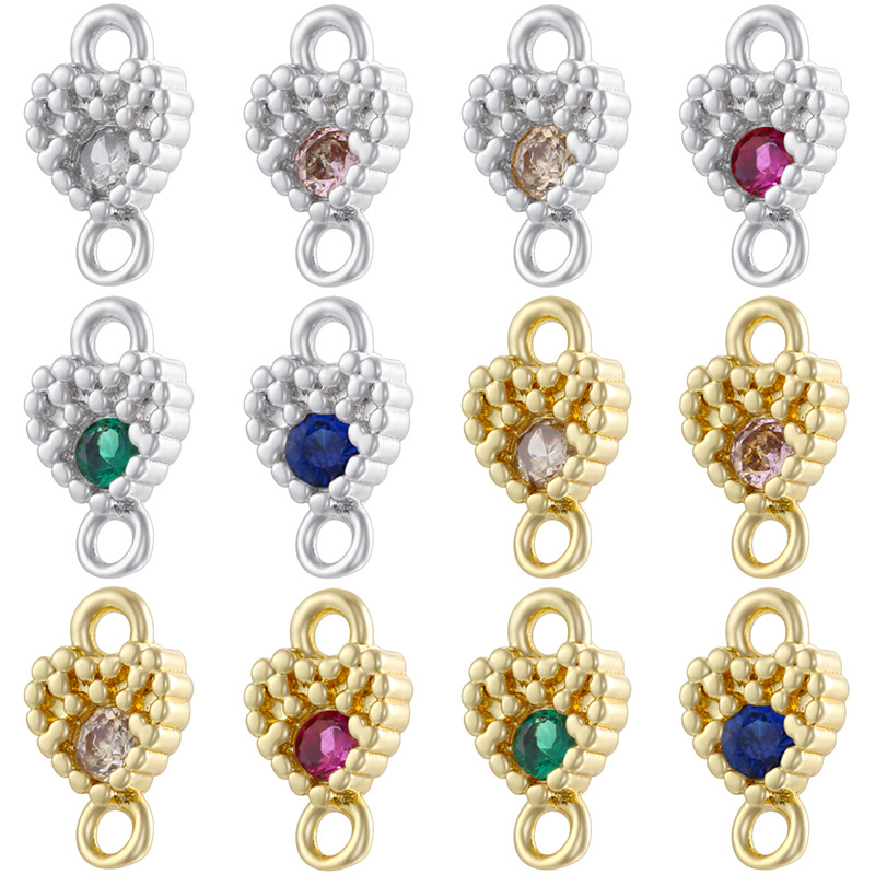 Cubic Zirconia Micro Pave Brass Connector, Heart, plated, DIY & micro pave cubic zirconia, more colors for choice, 4.5x7.5mm, Sold By PC