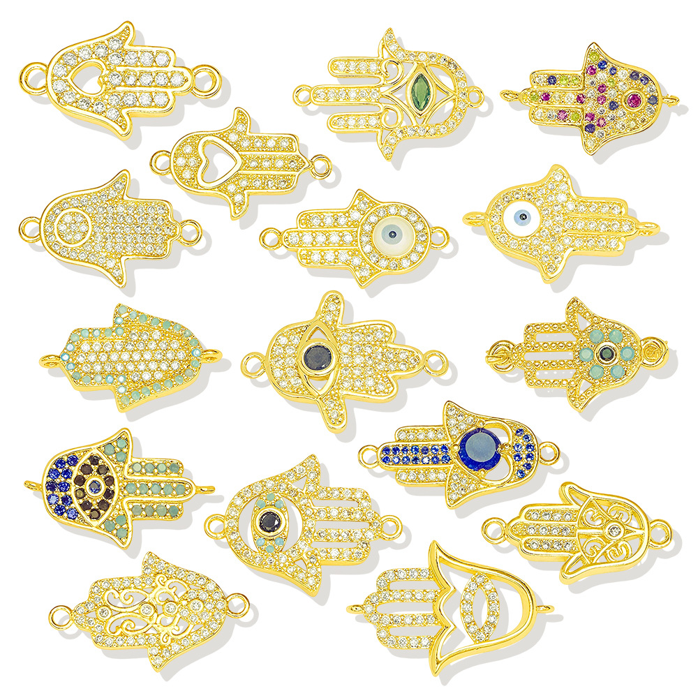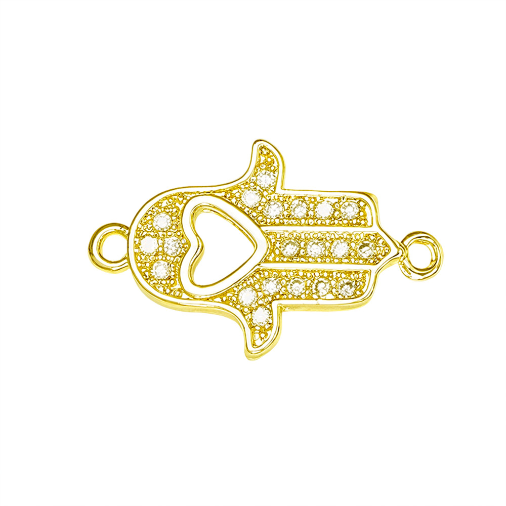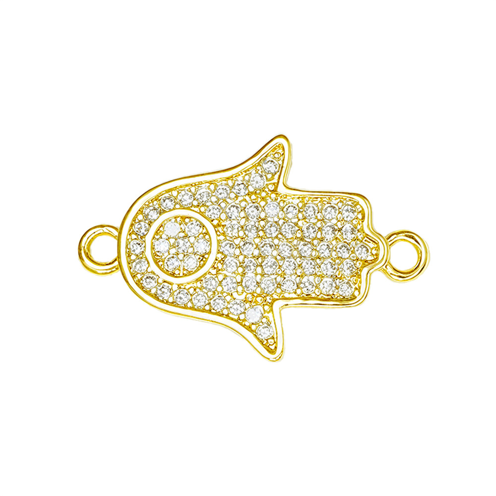 Cubic Zirconia Micro Pave Brass Connector, Hamsa, gold color plated, DIY & different styles for choice & micro pave cubic zirconia, Sold By PC