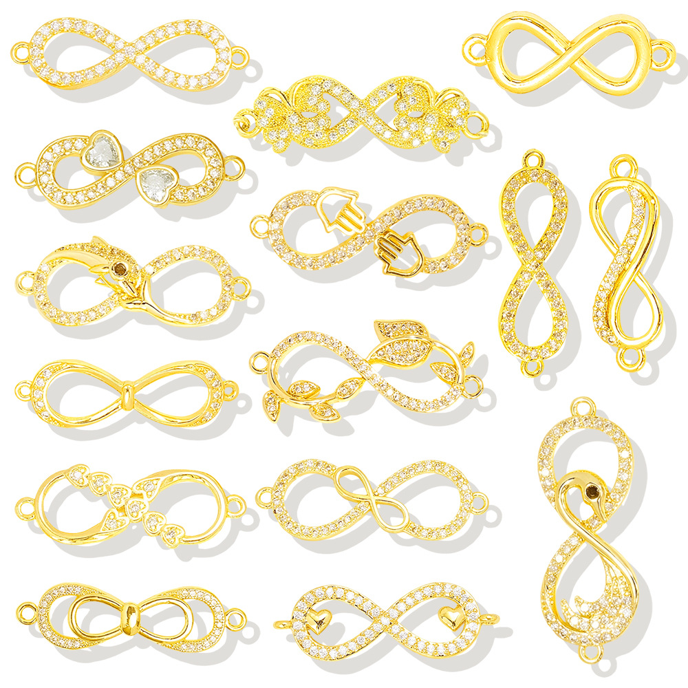 Cubic Zirconia Micro Pave Brass Connector, Infinity, gold color plated, DIY & different styles for choice & micro pave cubic zirconia, Sold By PC